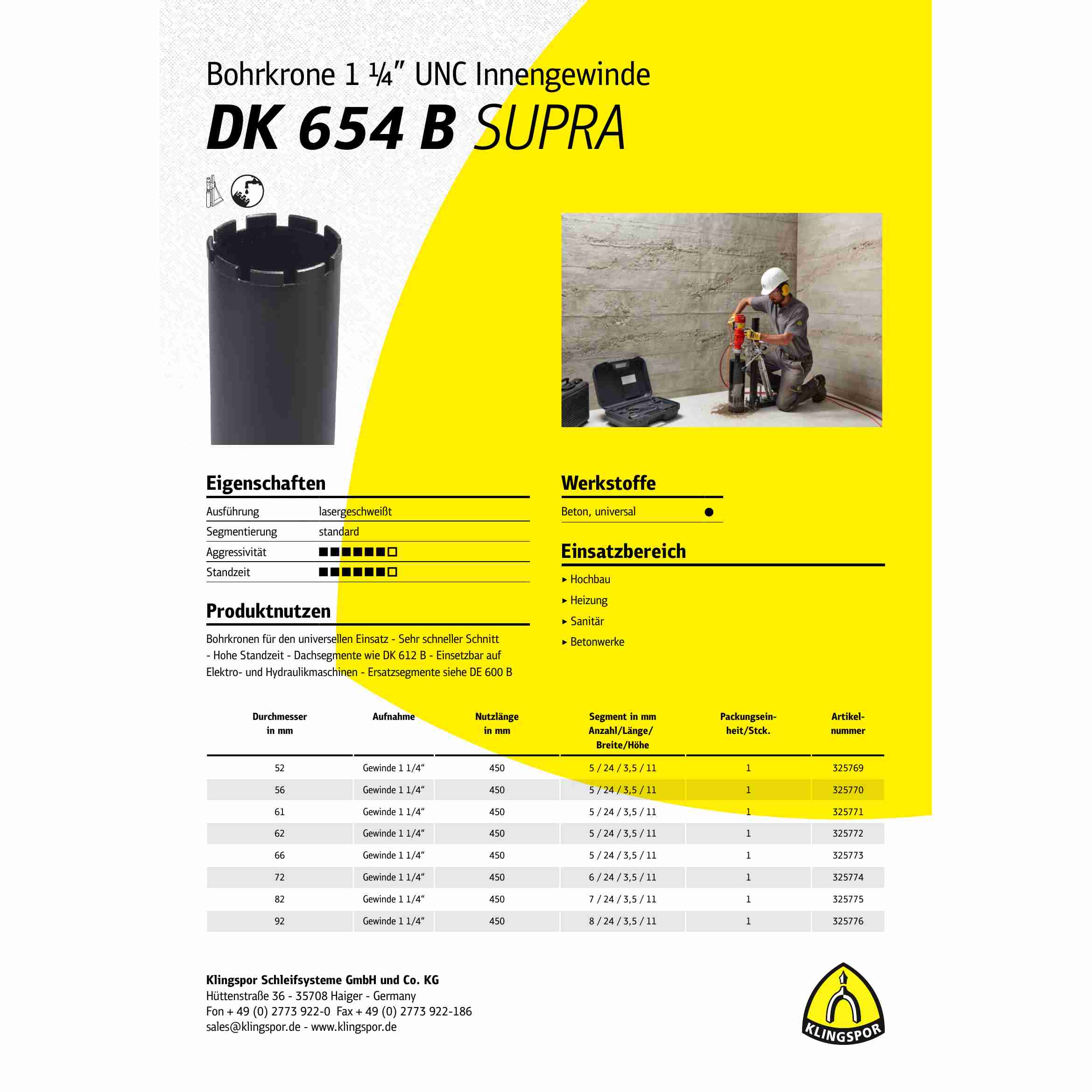 Die lasergeschweißte Konstruktion sorgt für eine hohe Präzision und eine lange Lebensdauer. Die Klingspor DK 654 B Bohrkrone ist eine ausgezeichnete Wahl für alle, die eine zuverlässige und leistungsstarke Bohrkrone benötigen.
