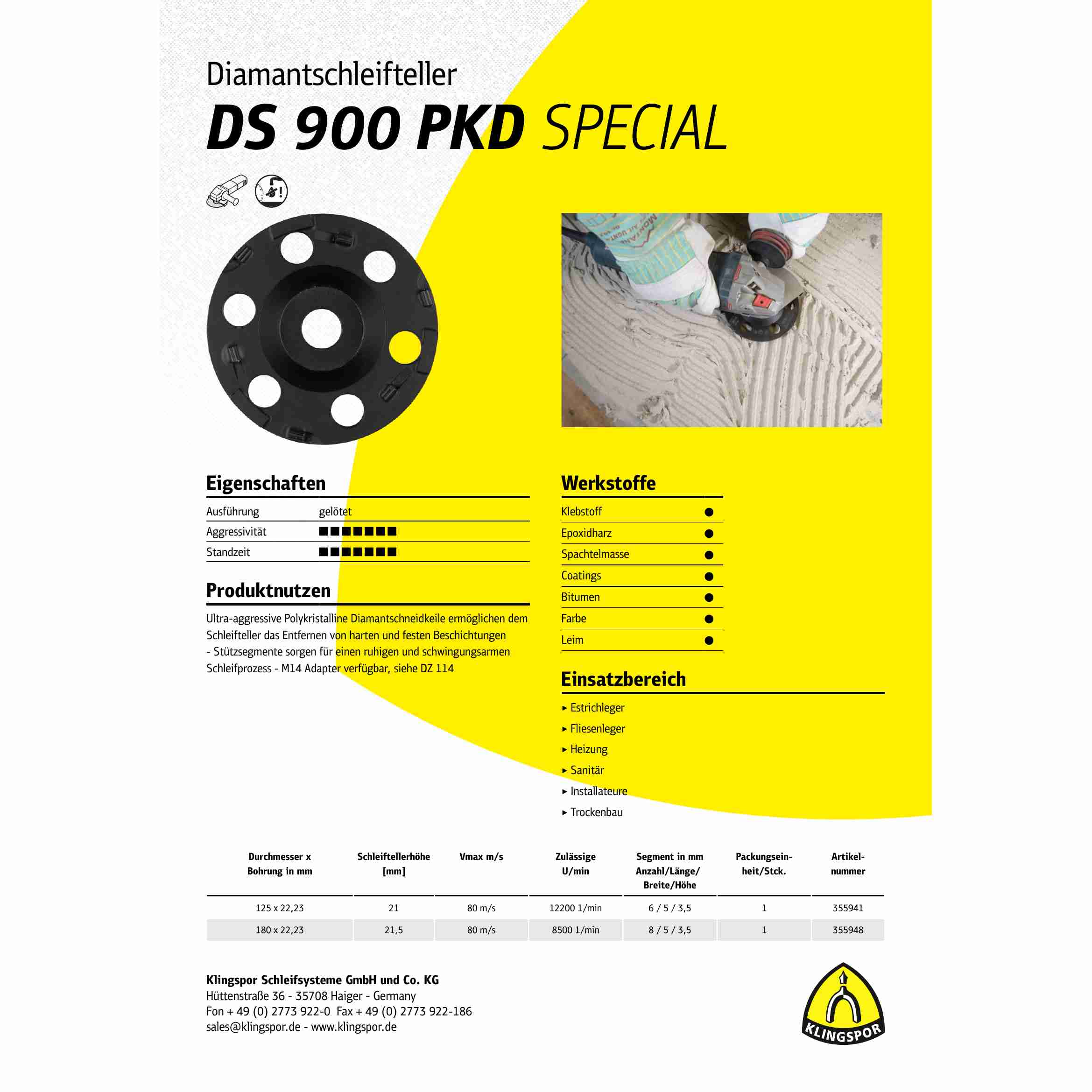 1 x Klingspor DS 900PKD Diamantschleifteller, 180 x 5 x 22,23 mm 8 Segmente 5 x 3,5 mm, PKD - Polykristalliner Diamant