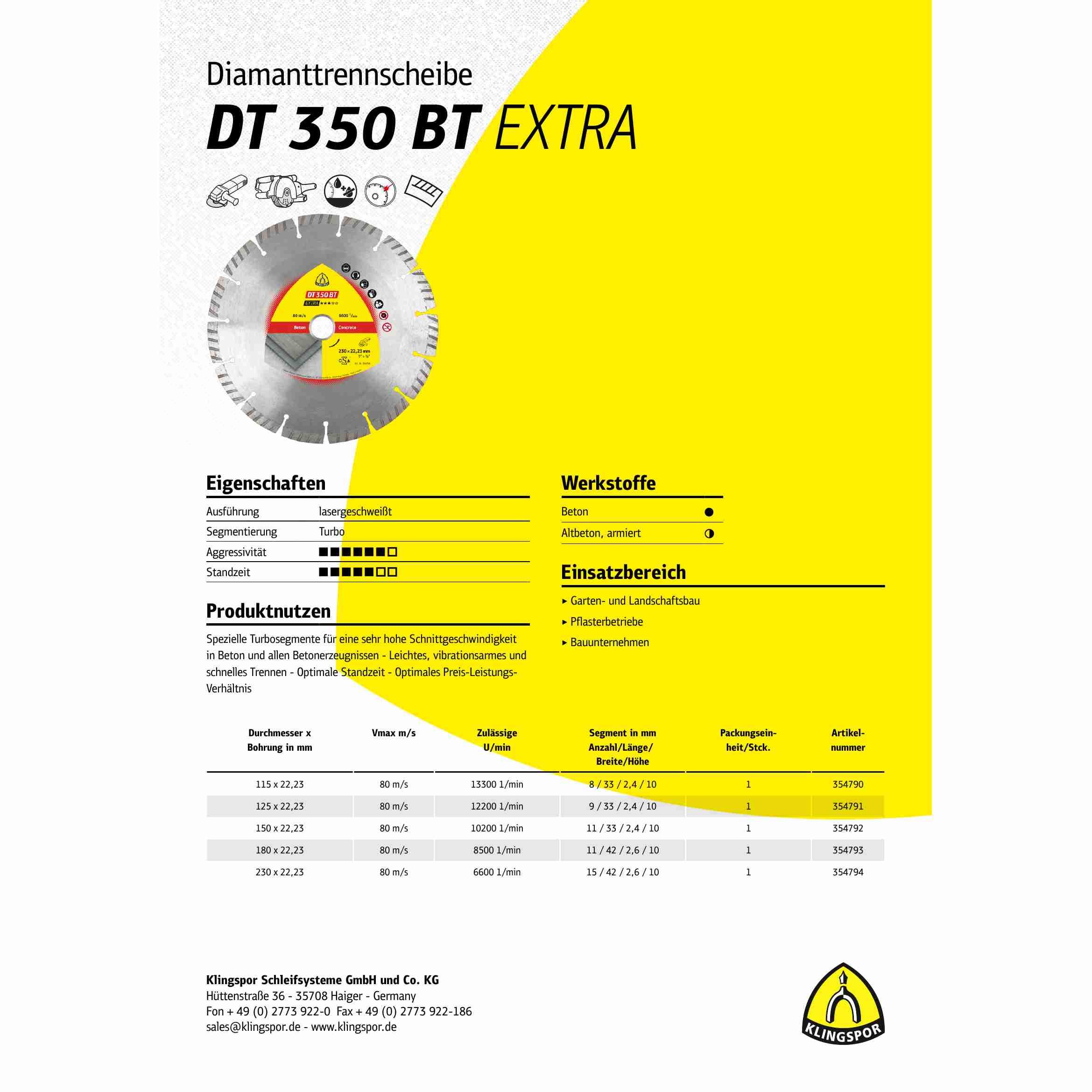 Vorteile: Spezielle Turbosegmente für eine sehr hohe Schnittgeschwindigkeit in Beton und allen Betonerzeugnissen - Leichtes, vibrationsarmes und schnelles Trennen - Optimale Standzeit - Optimales Preis-Leistungs-Verhältnis