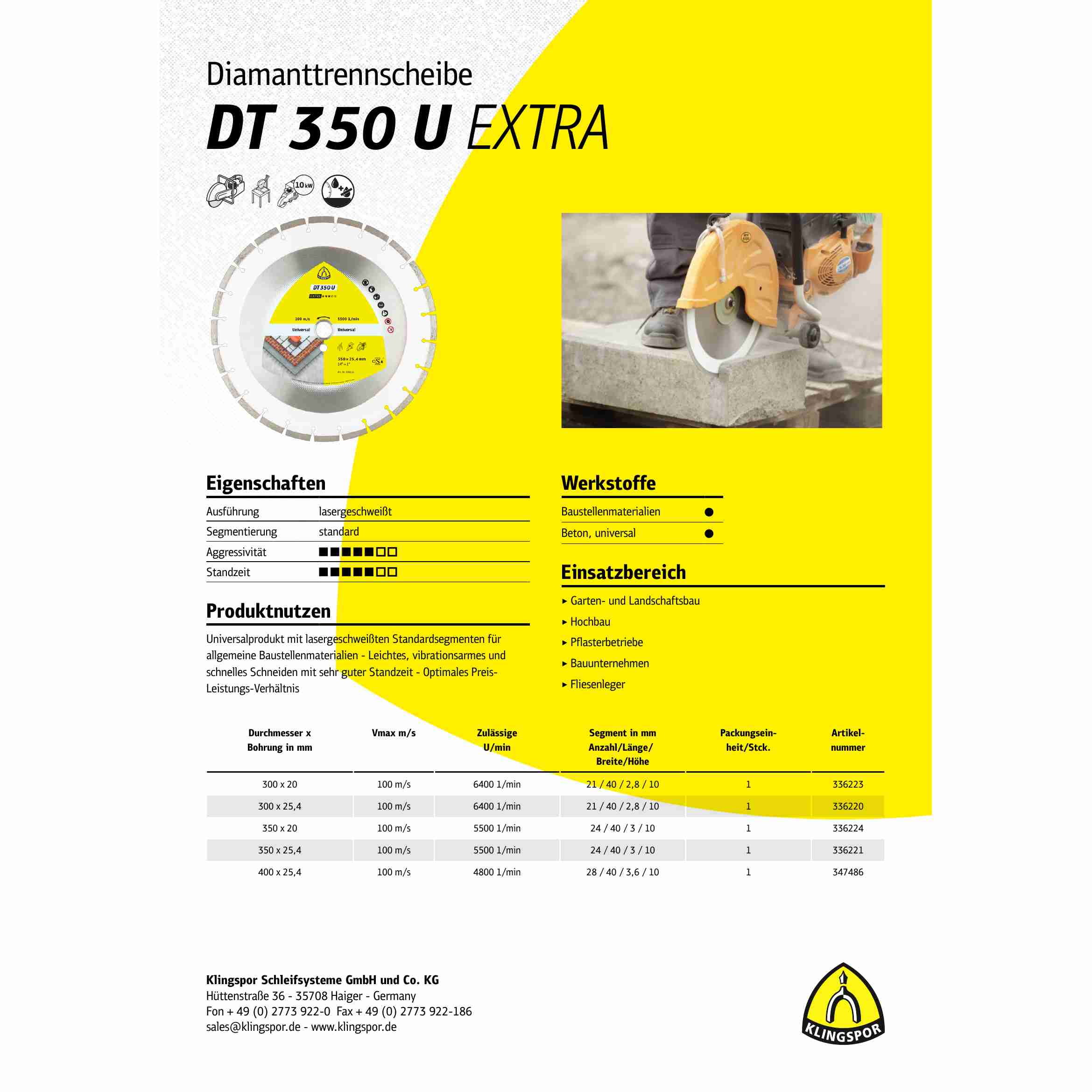 1 x Klingspor DT 350 U Diamanttrennscheiben, 350 x 3 x 20 mm 24 Segmente 40 x 3 x 10 mm, Standardverzahnung