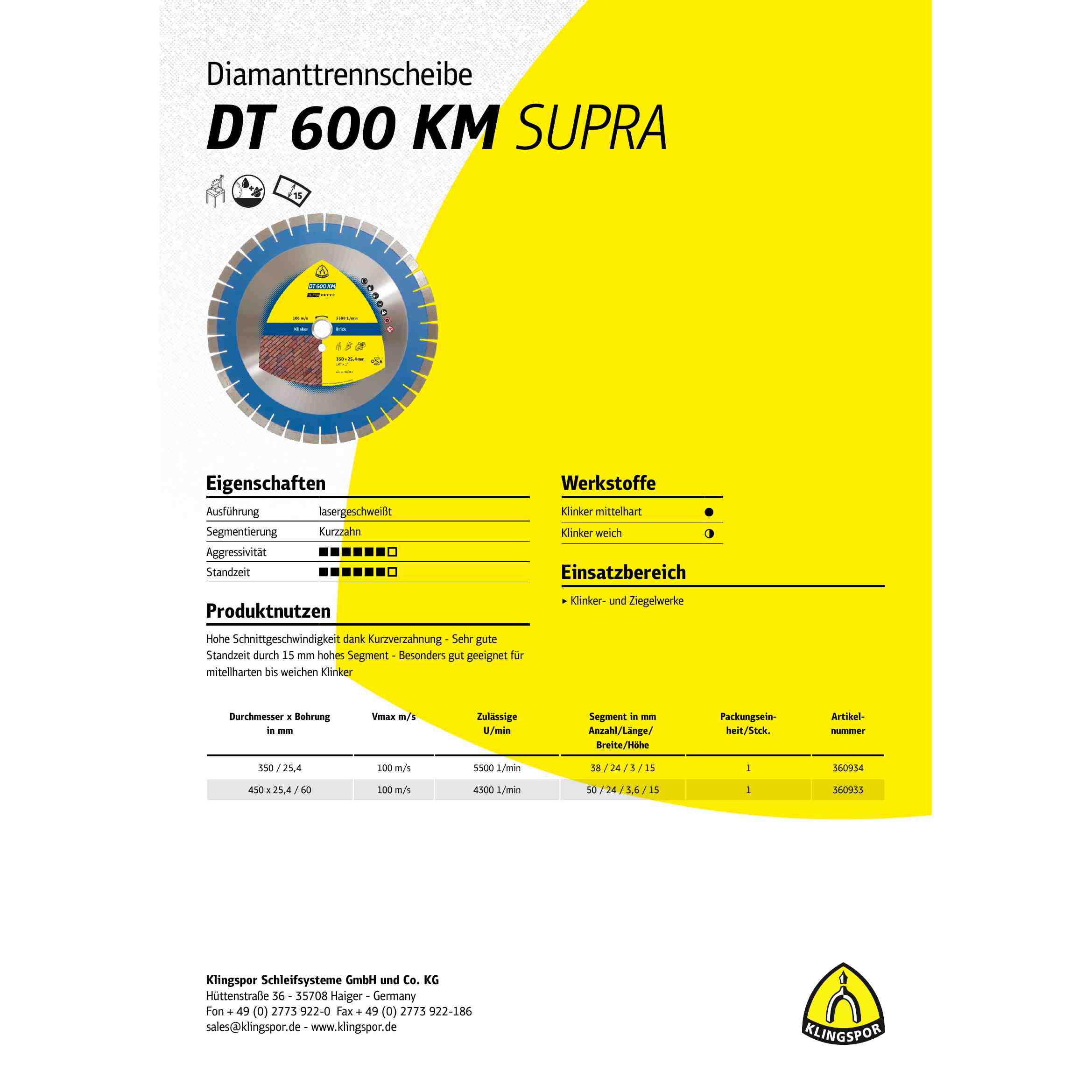 1 x Klingspor DT 600 KM Diamanttrennscheiben, 350 x 3 x 25,4 mm 38 Segmente 24 x 3 x 15 mm, Kurzverzahnung