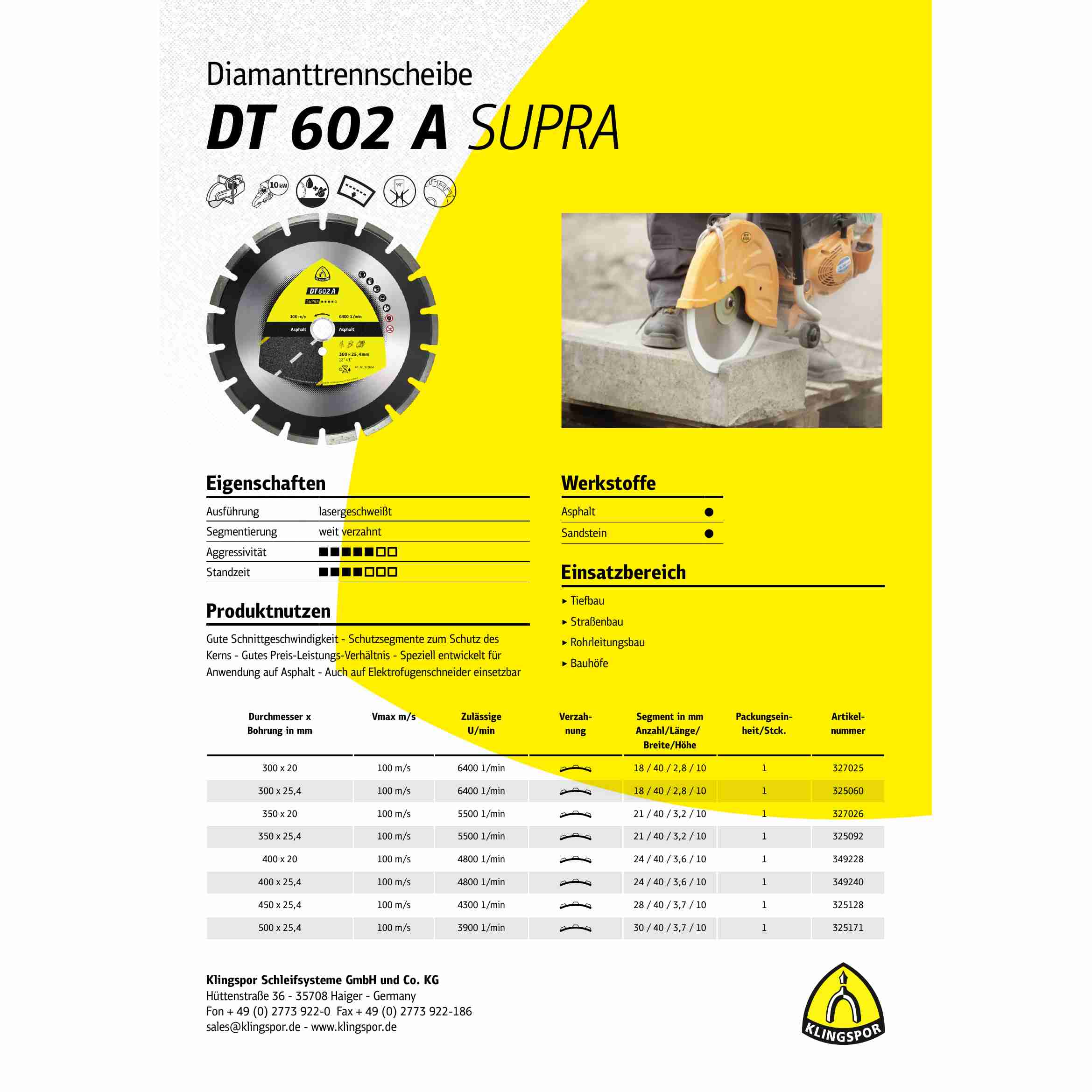 Merkmale: Die lasergeschweißte DT 602 A Supra ist mit Schutzsegmenten ausgestattet und eignet sich ideal zum schnellen Schneiden von Asphalt. Diese Profi-Scheibe bietet ein herausragendes Preis