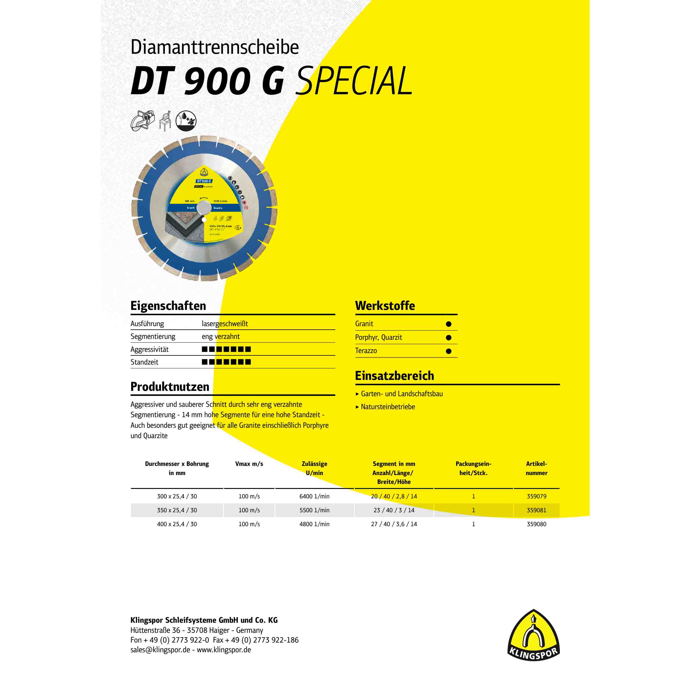 1 x Klingspor DT 900 G Diamanttrennscheiben, 350 x 3 x 30 mm 23 Segmente 40 x 3 x 14 mm, Standardverzahnung Reduzierring 25,4