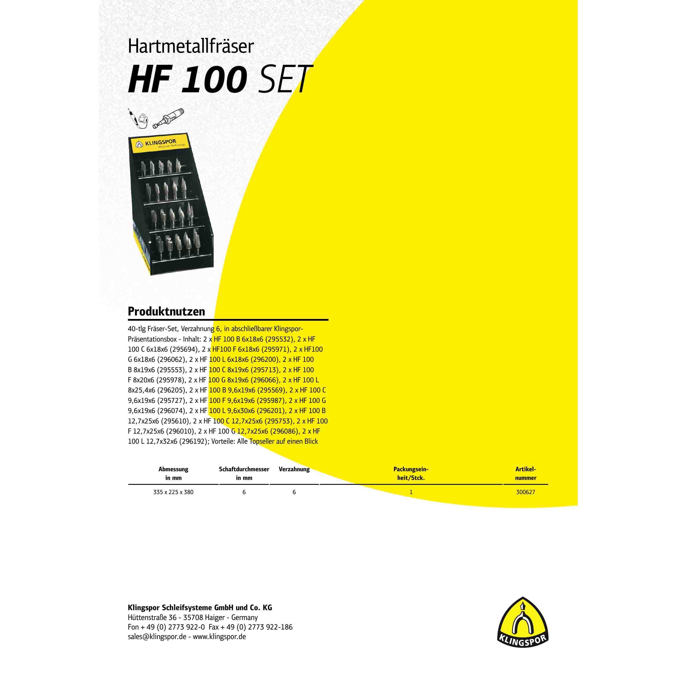 1 x Klingspor HF 100-A Fräser / Set, 6 mm Kreuzverzahnung