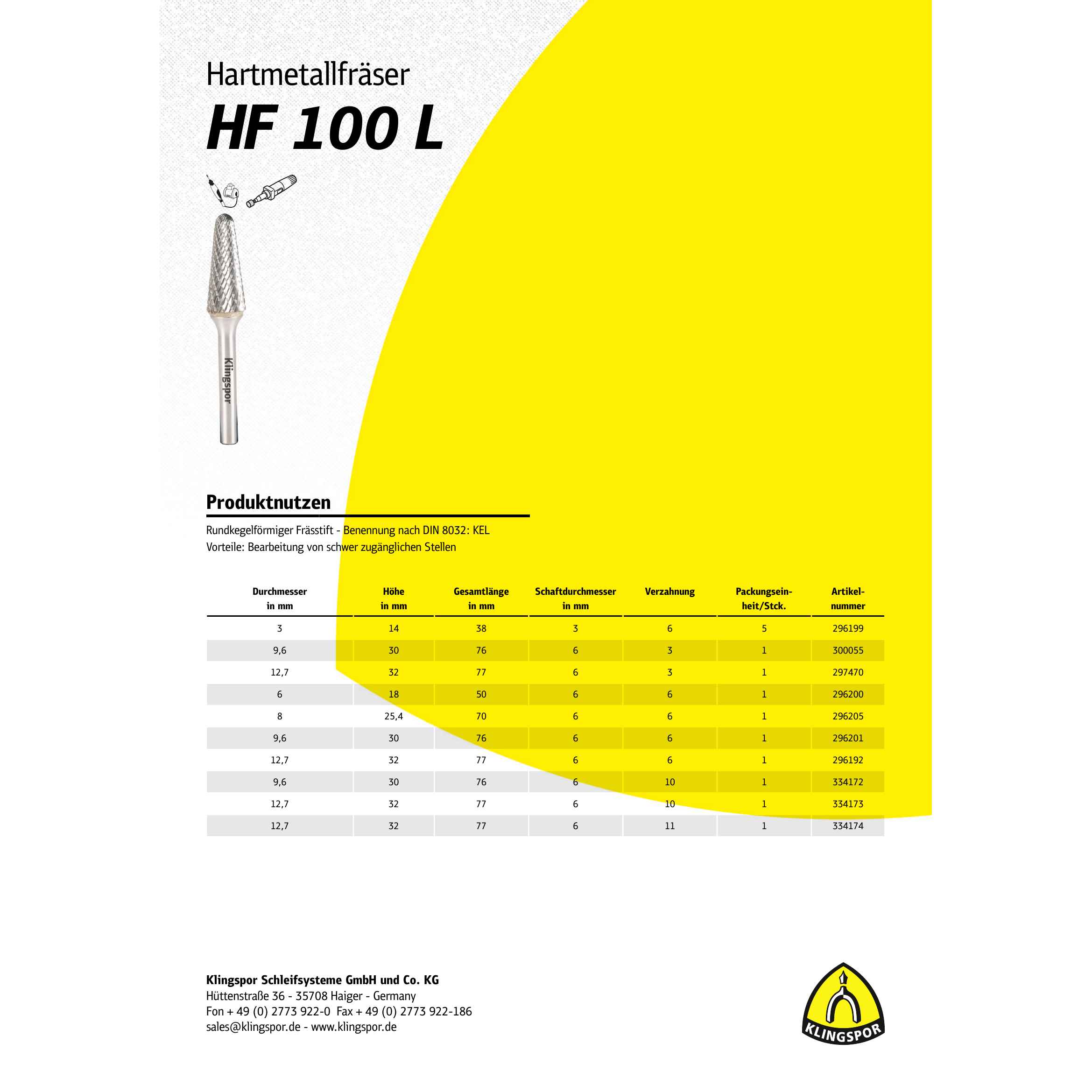 Wenn Sie auf der Suche nach einem hochwertigen Hartmetallfräser sind, der eine lange Lebensdauer und eine hohe Leistung bietet, dann ist der Klingspor HF 100 L Hartmetallfräser die perfekte Wahl für Sie. Bestellen Sie jetzt und erleben Sie die Vorteile dieses erstklassigen Werkzeugs.