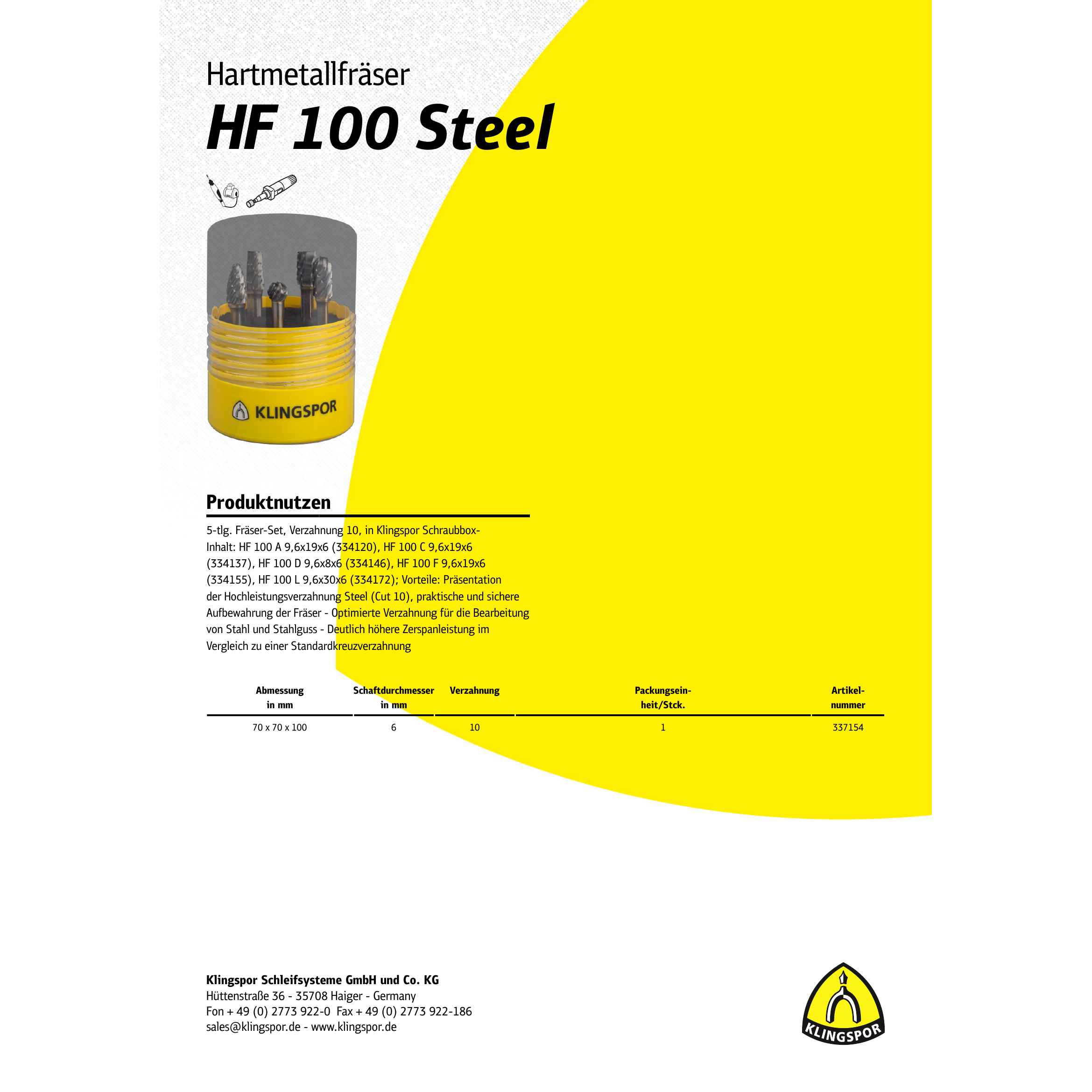 1 x Klingspor HF10STEEL Fräser / Set, 9,6 x 6 mm Spezialverzahnung Stahl