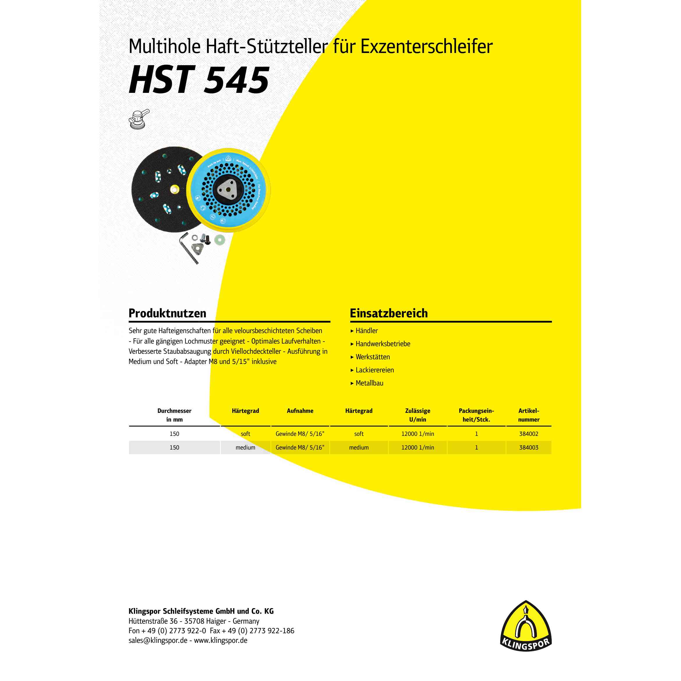 1 x Klingspor HST 545 Haftstützteller 150 mm MEDIUM Gewinde M8/5/16