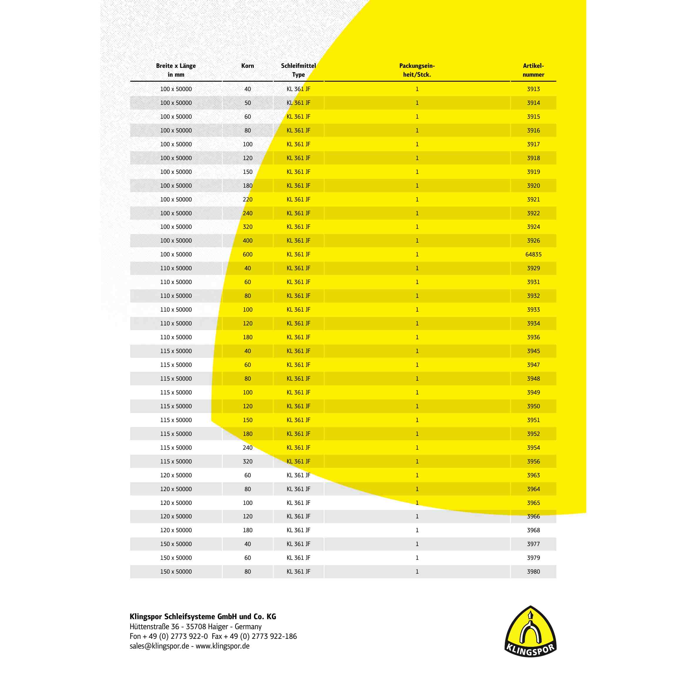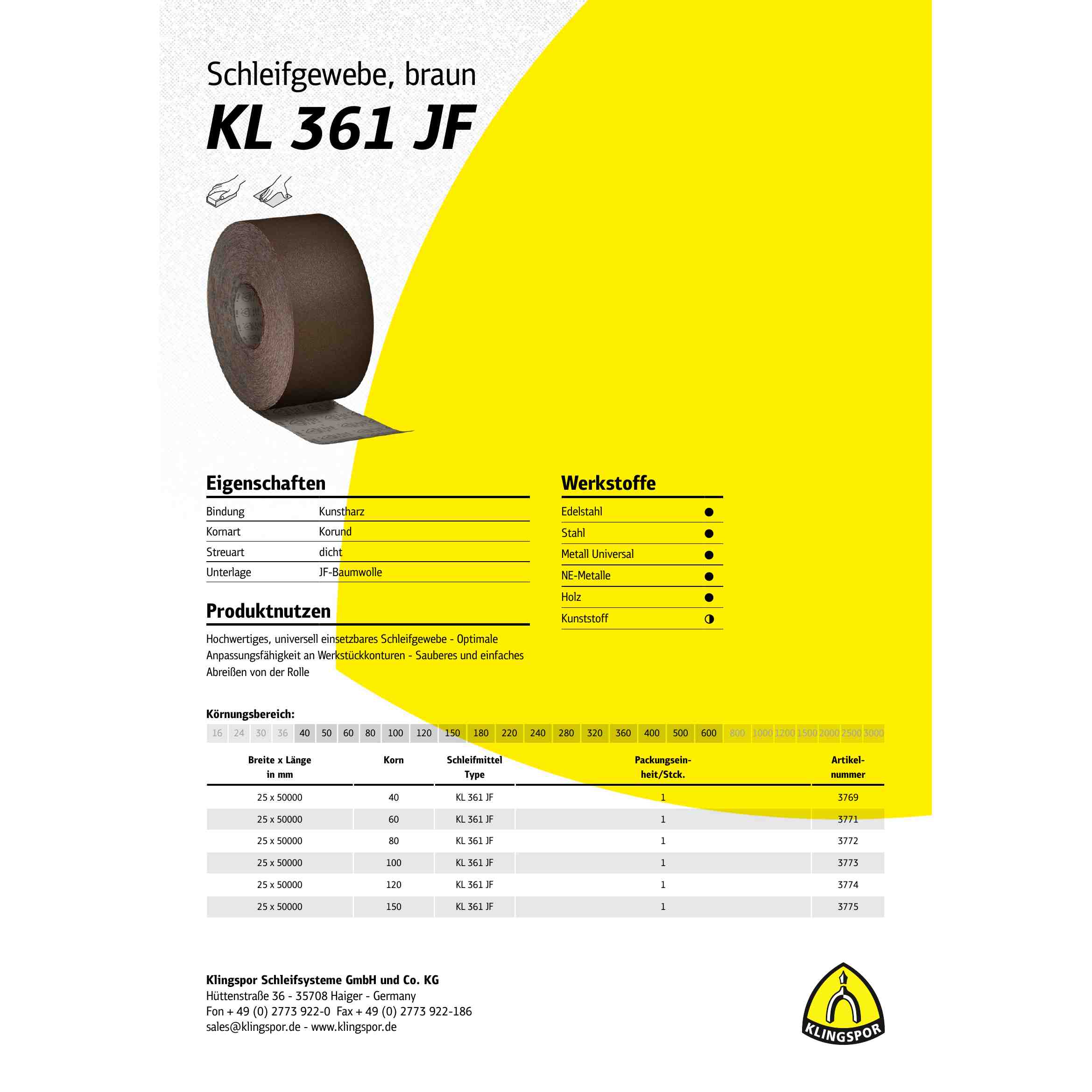 1 x Klingspor KL 361 JF Rollen, 25 x 50000 mm Korn 240