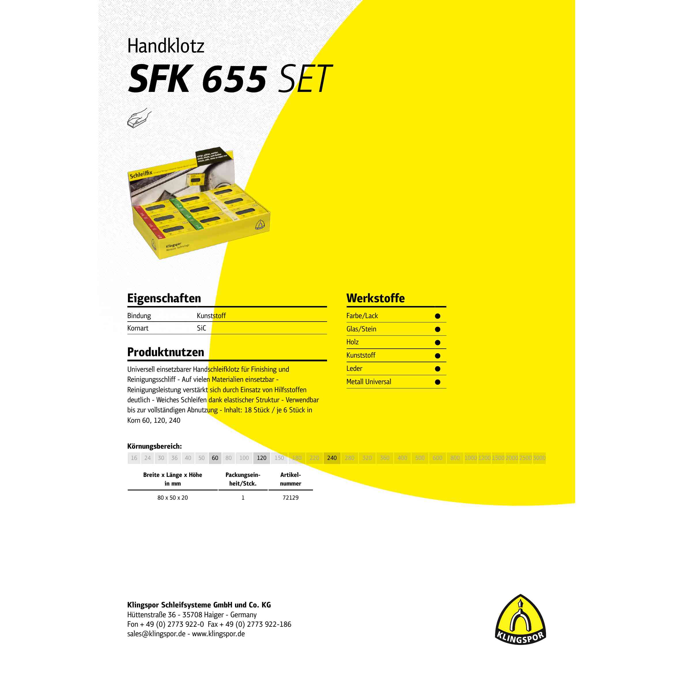 Vorteile: Das 18-teilige Klingspor SFK 655 Schleiffix Handklotz Set bietet Ihnen den vielseitigen Handschleifklotz SKF 655 mit SiC-Schleifkorn in den Körnungen 60, 120 und 240