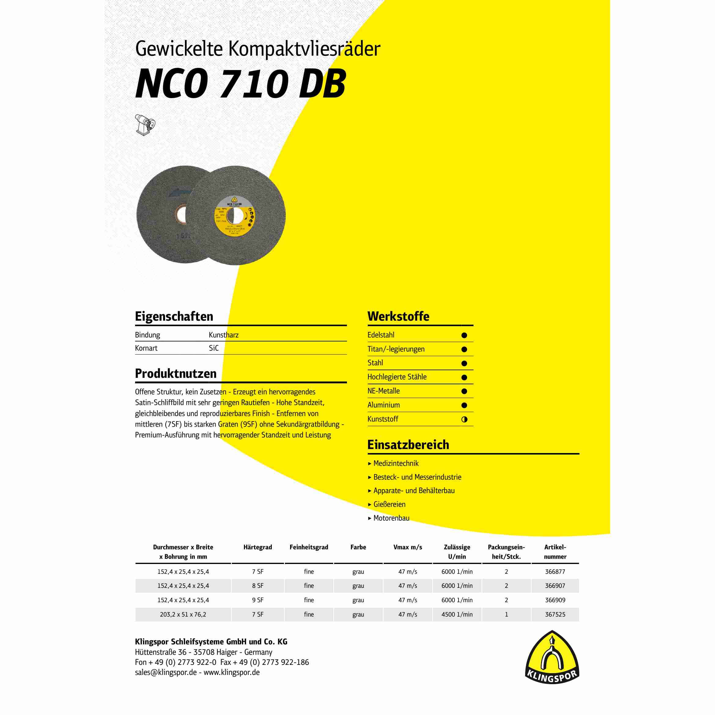 1 x Klingspor NCO 710DB Kompaktscheiben 9 SF hart 203,2 x 51 x 76,2 mm Fine Siliziumkarbid