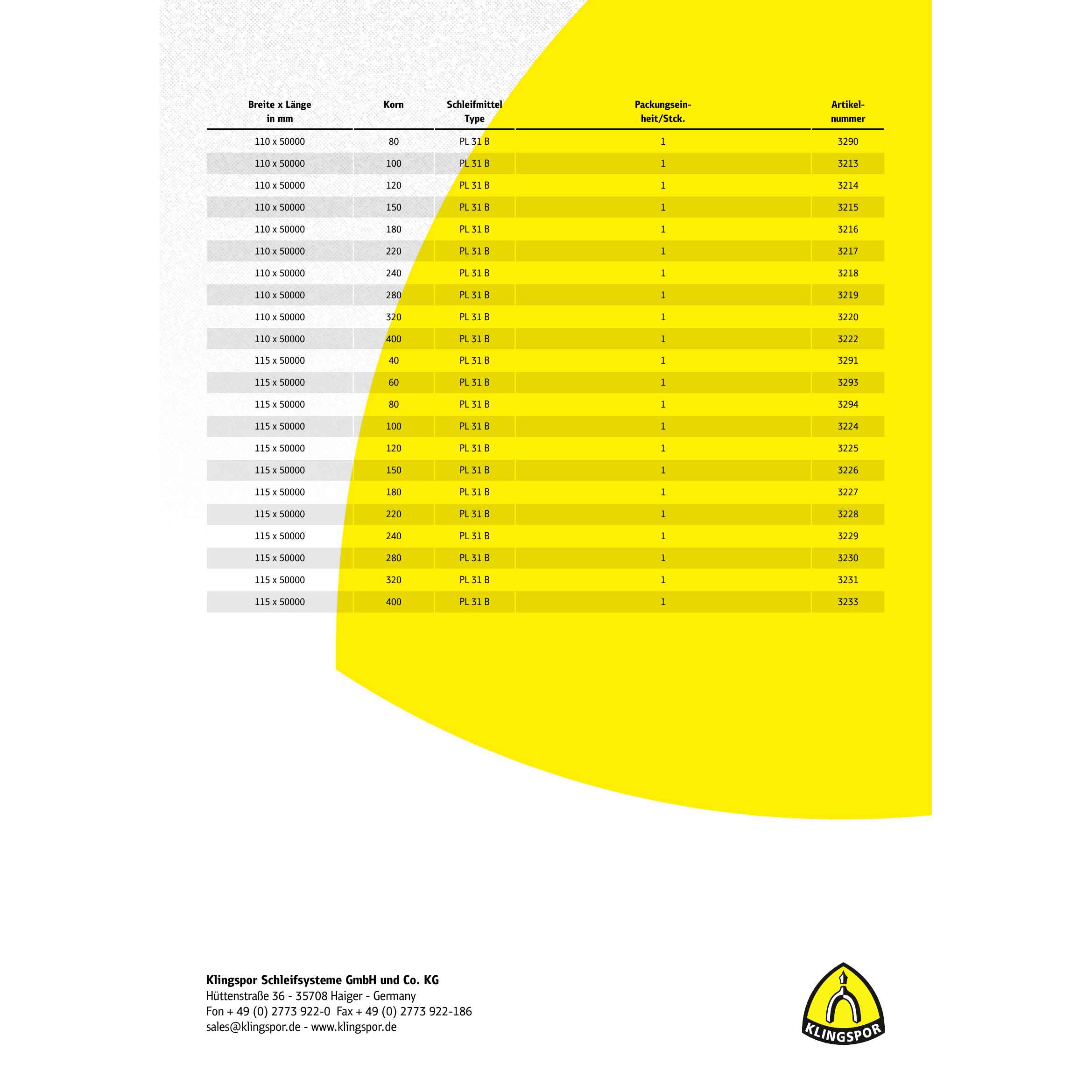 1 x Klingspor PL 31 B Rollen, 110 x 50000 mm Korn 60
