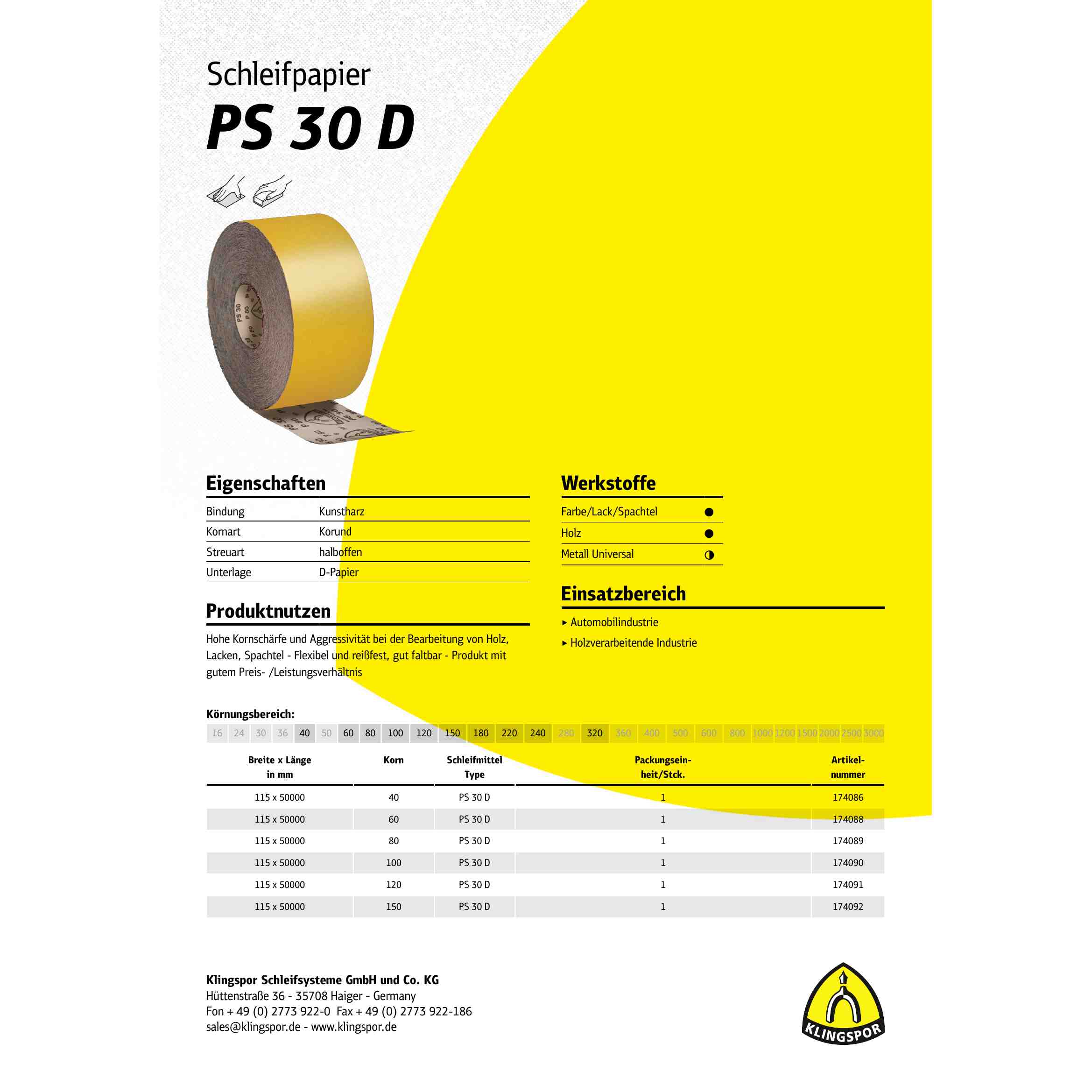 1 x Klingspor PS 30 D Rollen, 115 x 50000 mm Korn 180