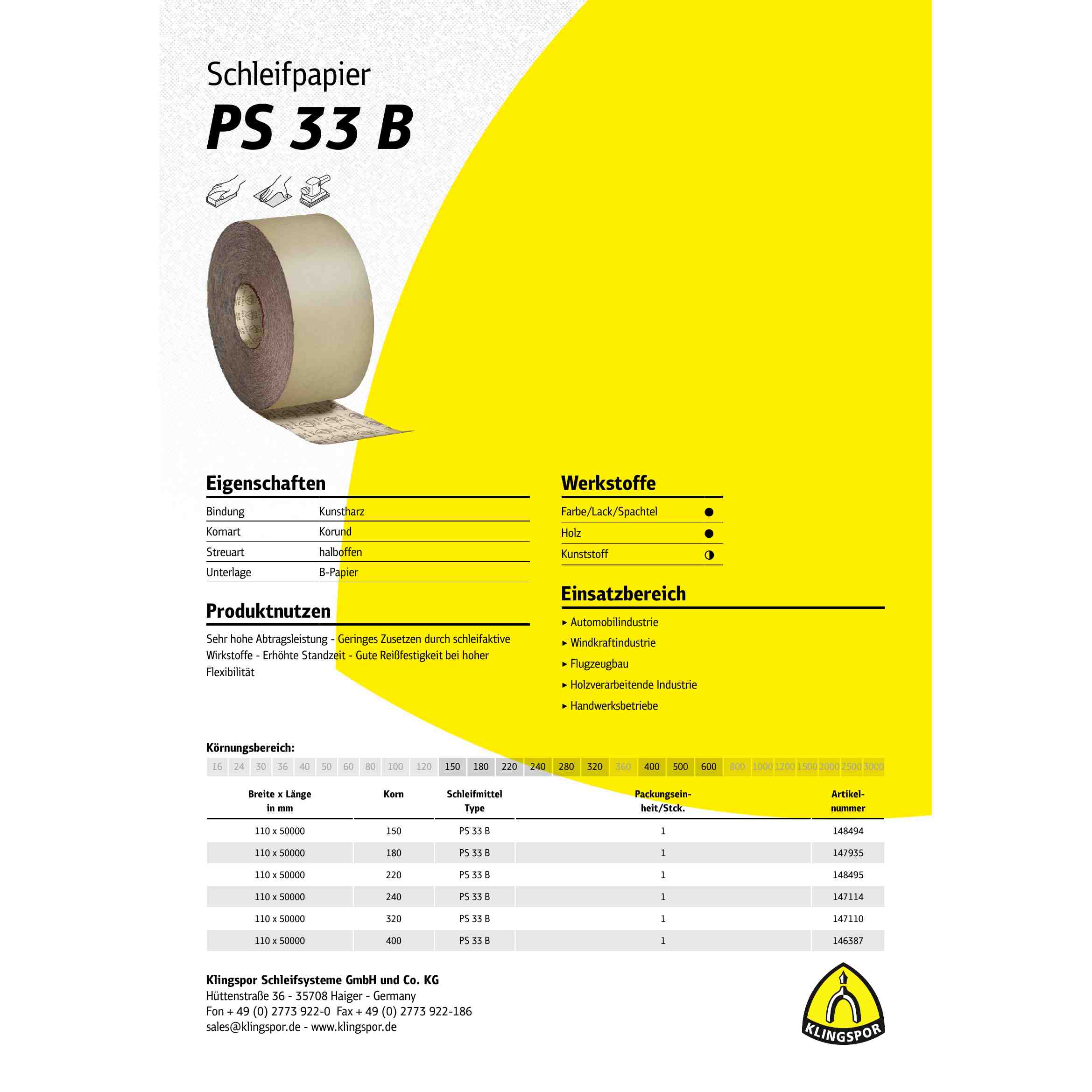 1 x Klingspor PS 33 B Rollen, 110 x 50000 mm Korn 180