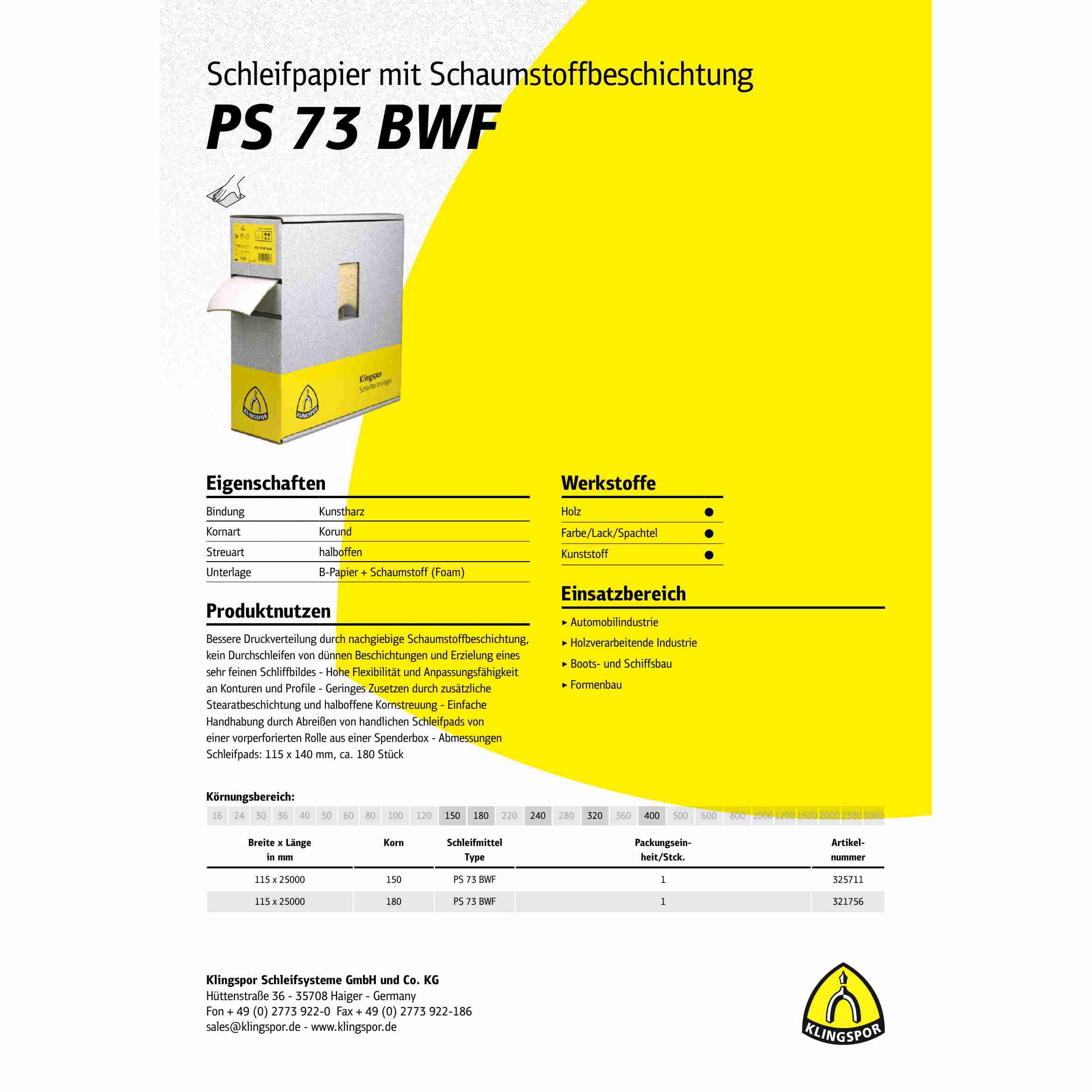1 x Klingspor PS 73 BWF Rollen wirkstoffbeschichtet, 115 x 25000 mm Korn 150 140PERF
