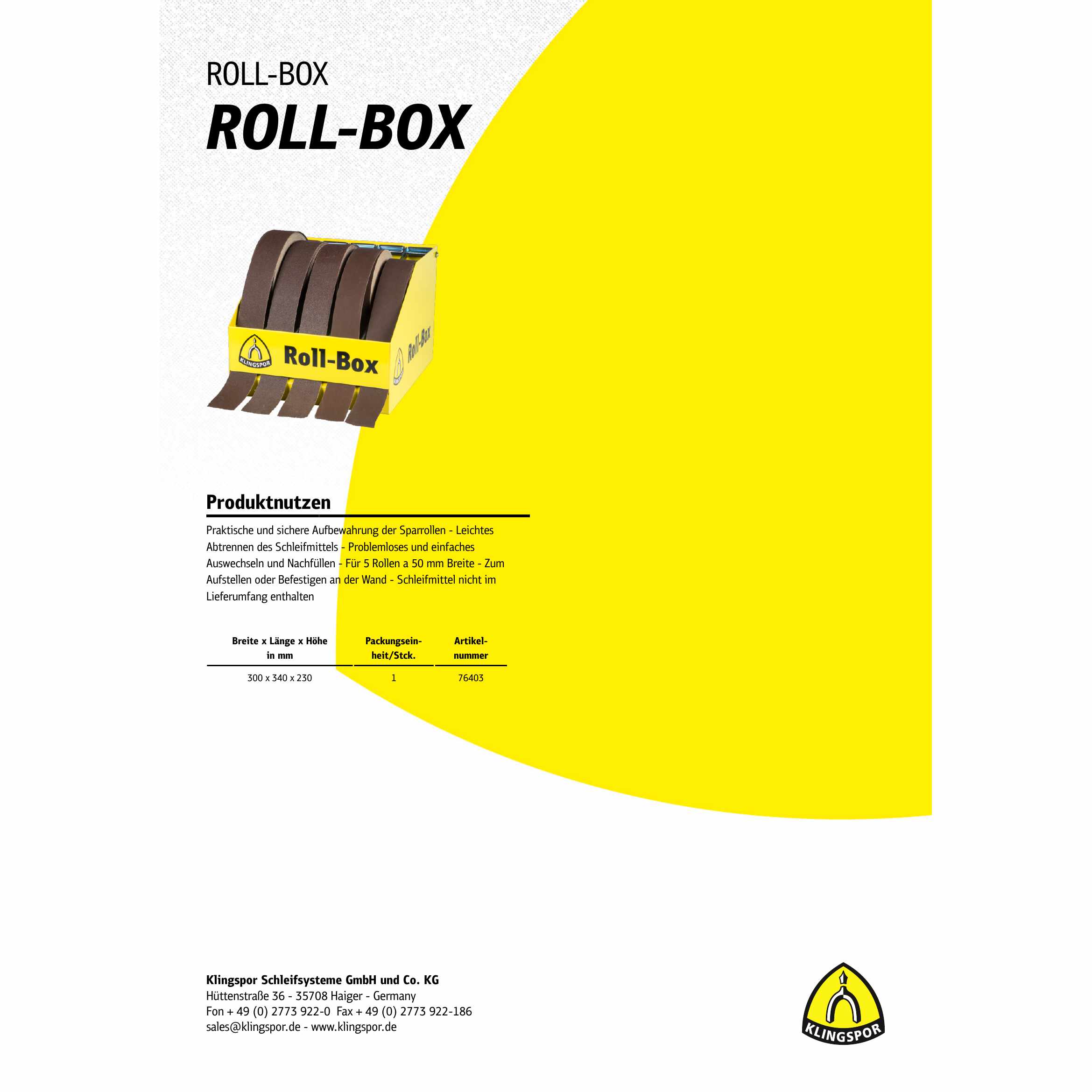 1 x Klingspor ROLL-BOX für Schleifrollen mit 50 mm Breite (Schleifmittel nicht im Lieferumfang)