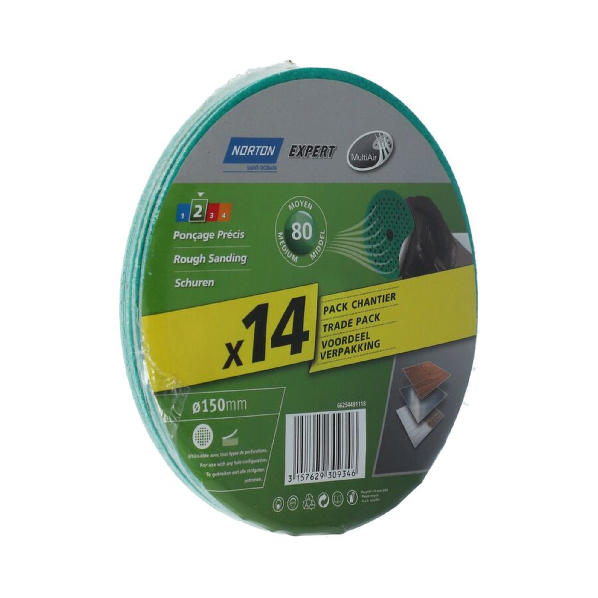 1 x Norton Scheiben Klett 150x18mm K80 Multi-Air Lochung EXPERT, 14 Stück