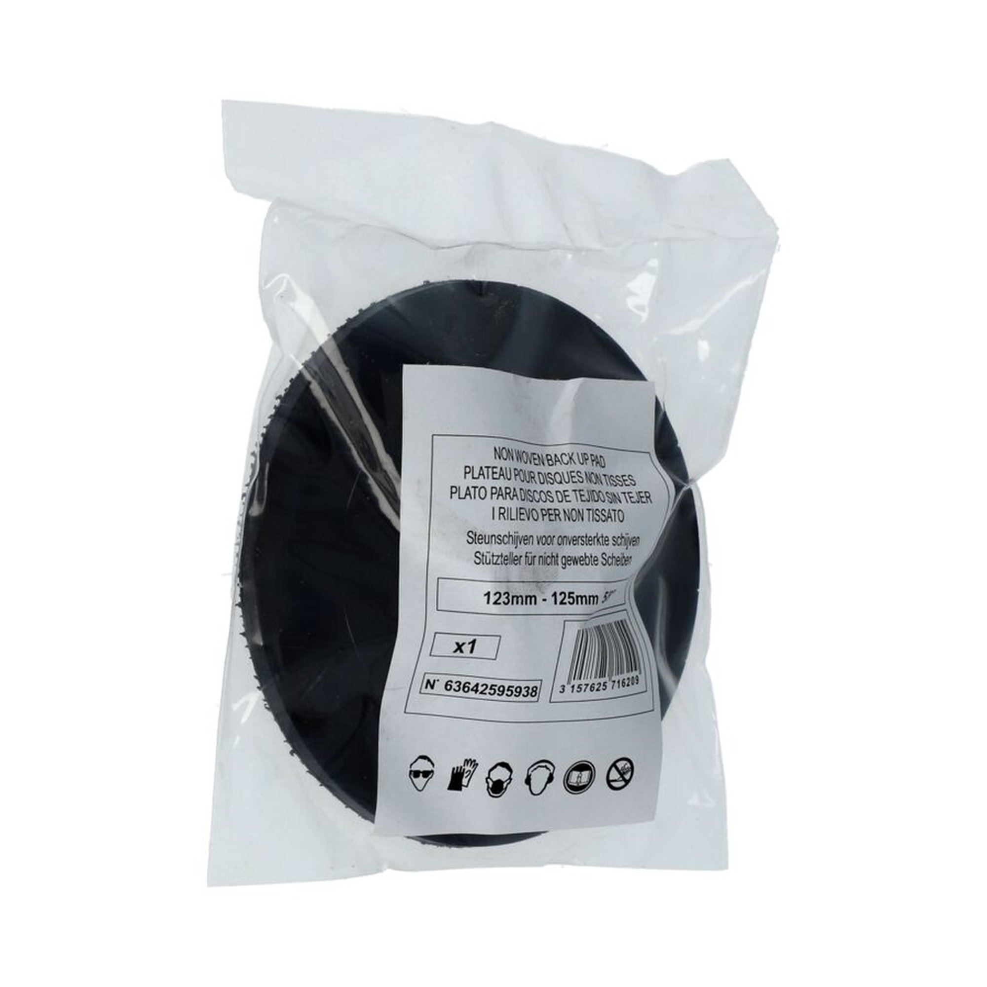 Stützteller mit 125mm Durchmesser für effizientes Schleifen, einfache Montage, reduzierte Vibrationen. Ideal für Metallbearbeitung und diverse Industrien.,
