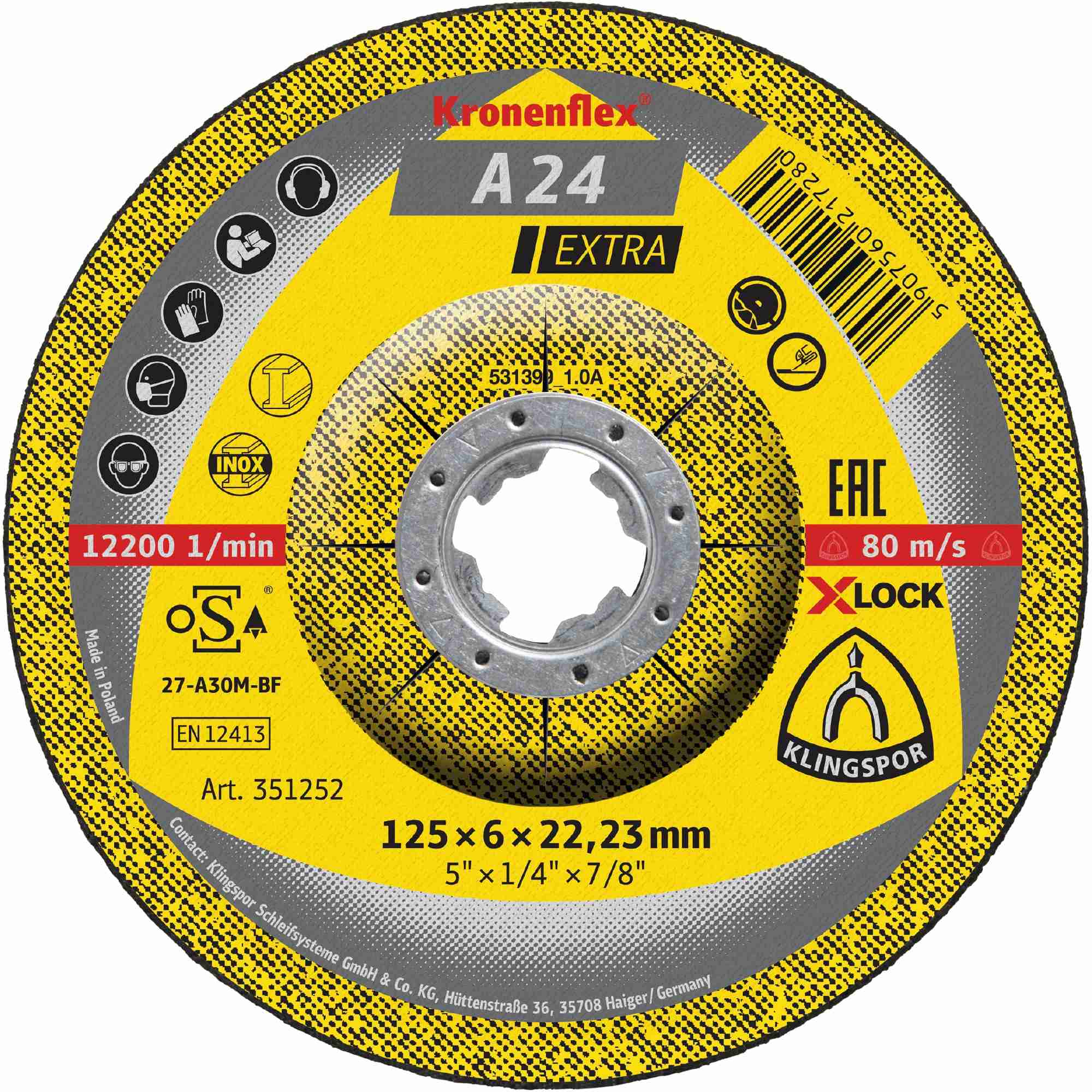 10 x Klingspor A 24 EX Schruppscheiben | X-LOCK, 125 x 6 x 22,23 mm gekröpft