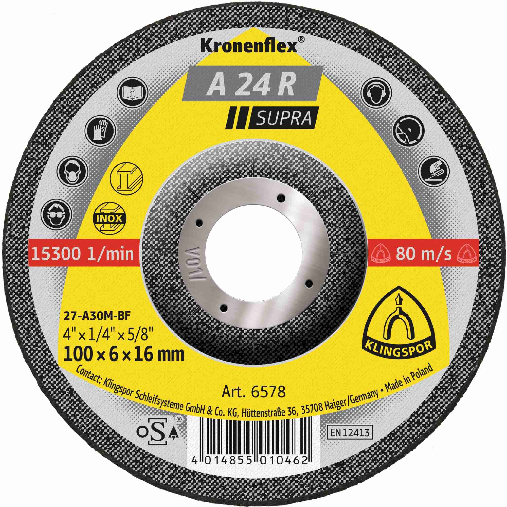 Die Klingspor A 24 R Schruppscheiben zeichnen sich durch ihre hohe Schleifleistung und ihre lange Standzeit aus. Sie sind besonders effektiv bei der Bearbeitung von Stahl und Edelstahl, aber auch Gussteilen können problemlos geschliffen werden.