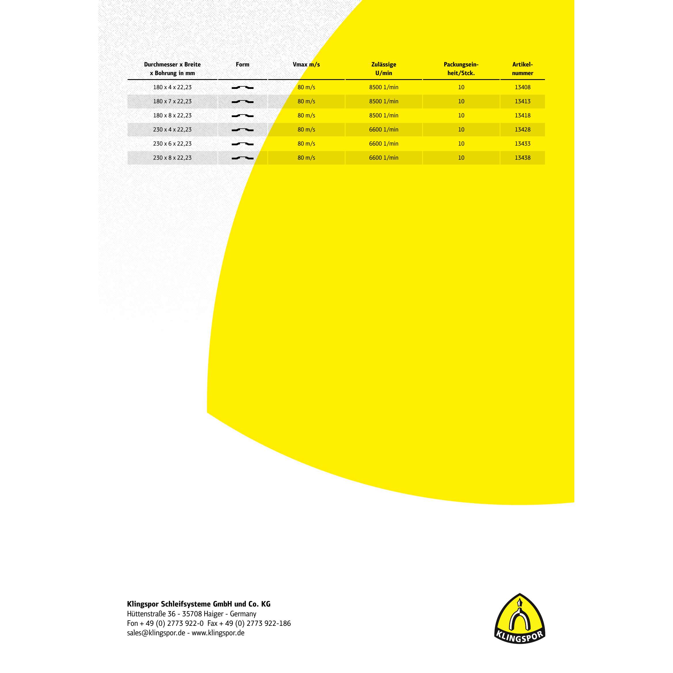 Besonderheiten: Hohe Schleifleistung und Standzeit bei der Bearbeitung von Stahl, Edelstahl und Gussteilen. Handliche Größe von 125x6x22,23mm und gekröpfte Form für einfache Handhabung