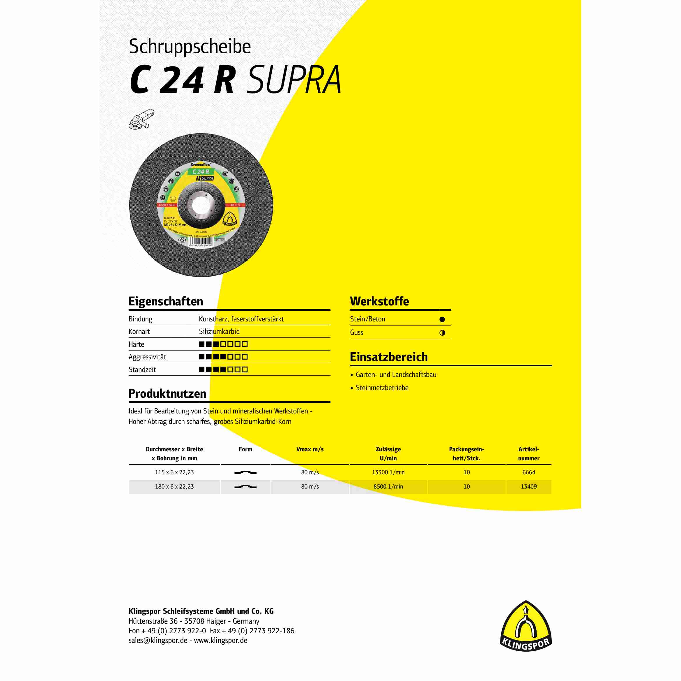 Die Klingspor C 24 R Schruppscheiben sind eine Standardausführung und bieten eine hohe Qualität und Zuverlässigkeit. Sie sind eine kosteneffektive Lösung für die Bearbeitung von mineralischen Werkstoffen und bieten eine hohe Leistungsfähigkeit und eine lange Lebensdauer.