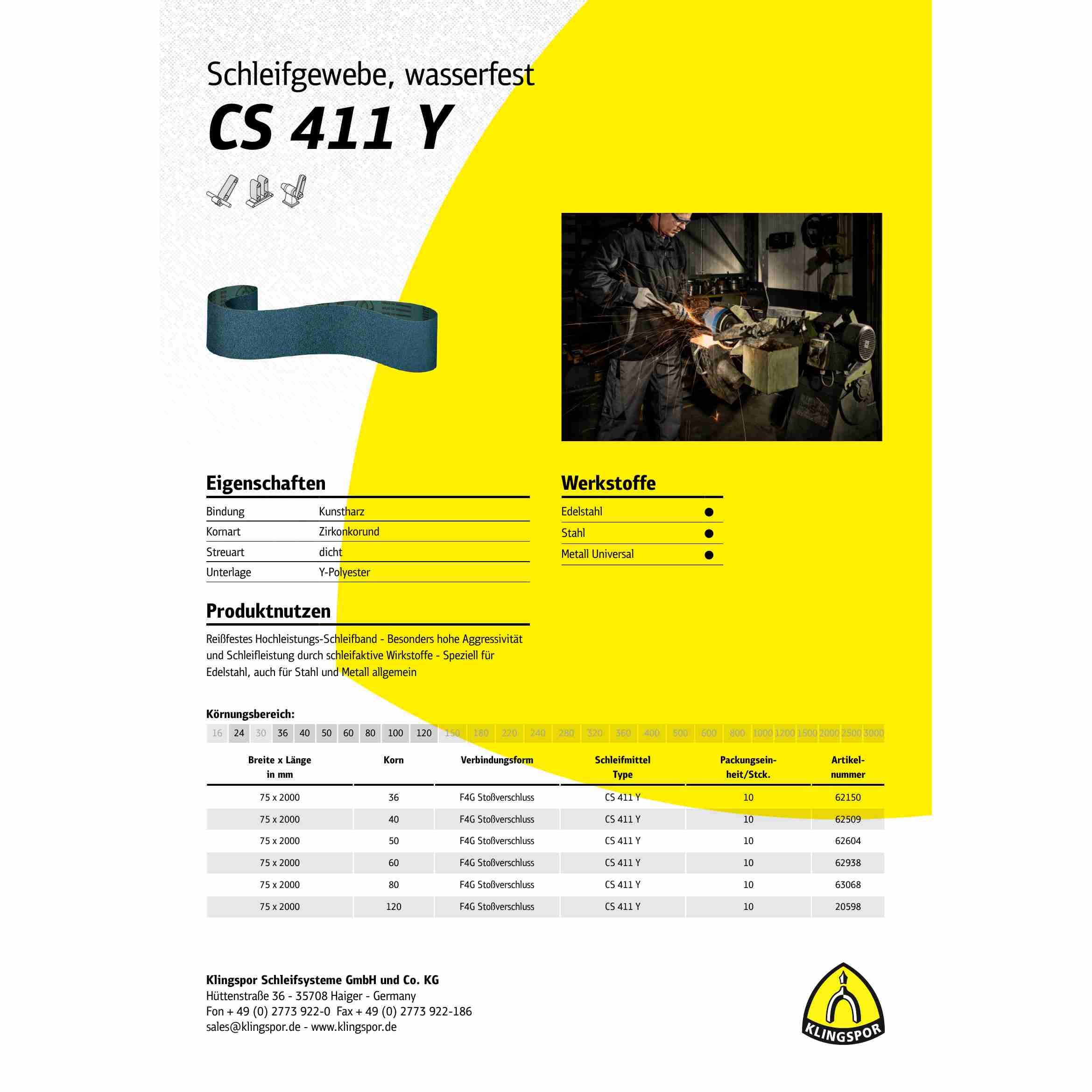 10 x Klingspor CS 411 Y Bänder, 75 x 2000 mm Korn 80 F4G