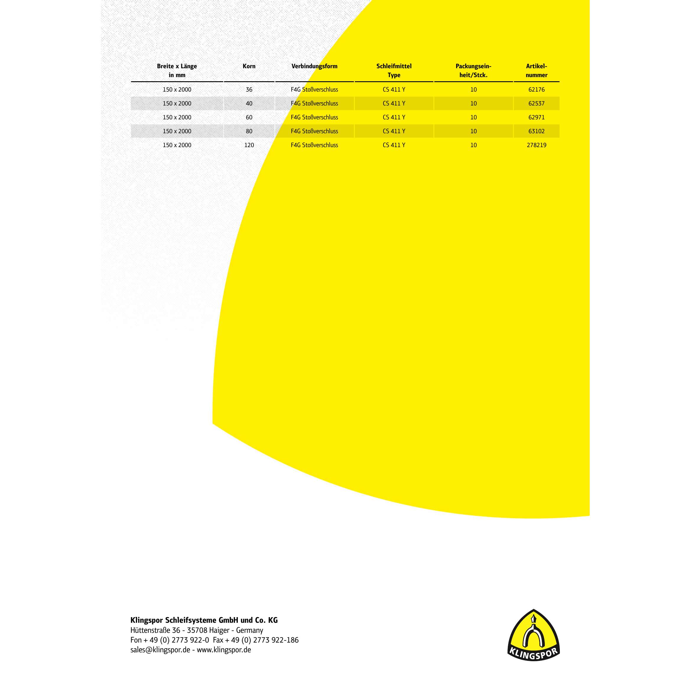 Eigenschaften: Das Klingspor CS 411 Y Schleifband ist ein hochwertiges Schleifmittel mit herausragenden Eigenschaften. Es ist besonders reißfest und wurde speziell entwickelt, um Stahl und Edelstahl grob zu schleifen und zu entgraten