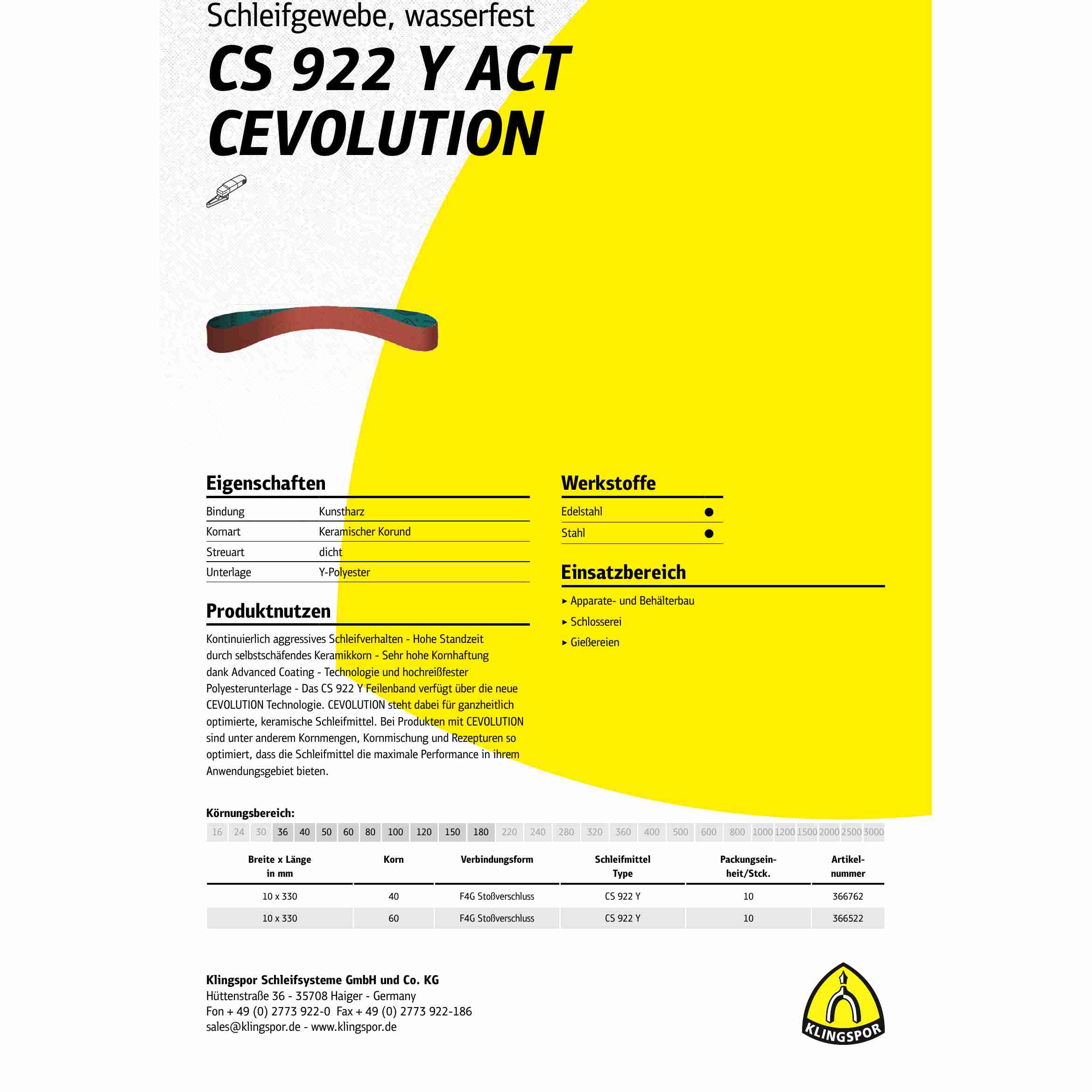 Zusammenfassend ist das CS 922 Y Feilenband eine hervorragende Wahl für professionelle Anwendungen, die eine hohe Abtragsleistung und Langlebigkeit erfordern.