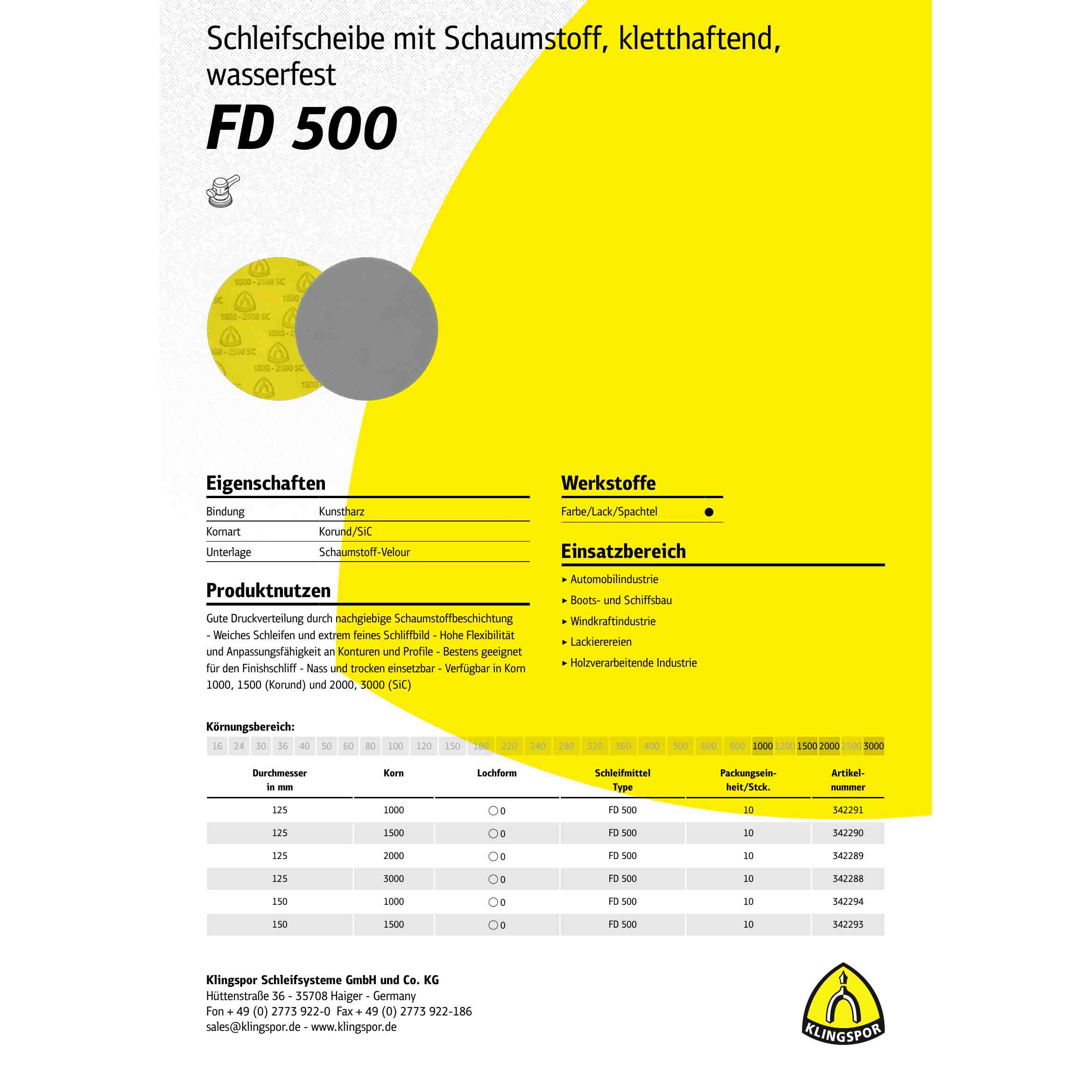 Die Klingspor FD 500 Scheiben sind die perfekte Wahl für den Finishschliff. Mit einer Größe von 150mm und einem Korn von 2000 bieten sie eine hohe Flexibilität und Anpassungsfähigkeit an Konturen und Profile.