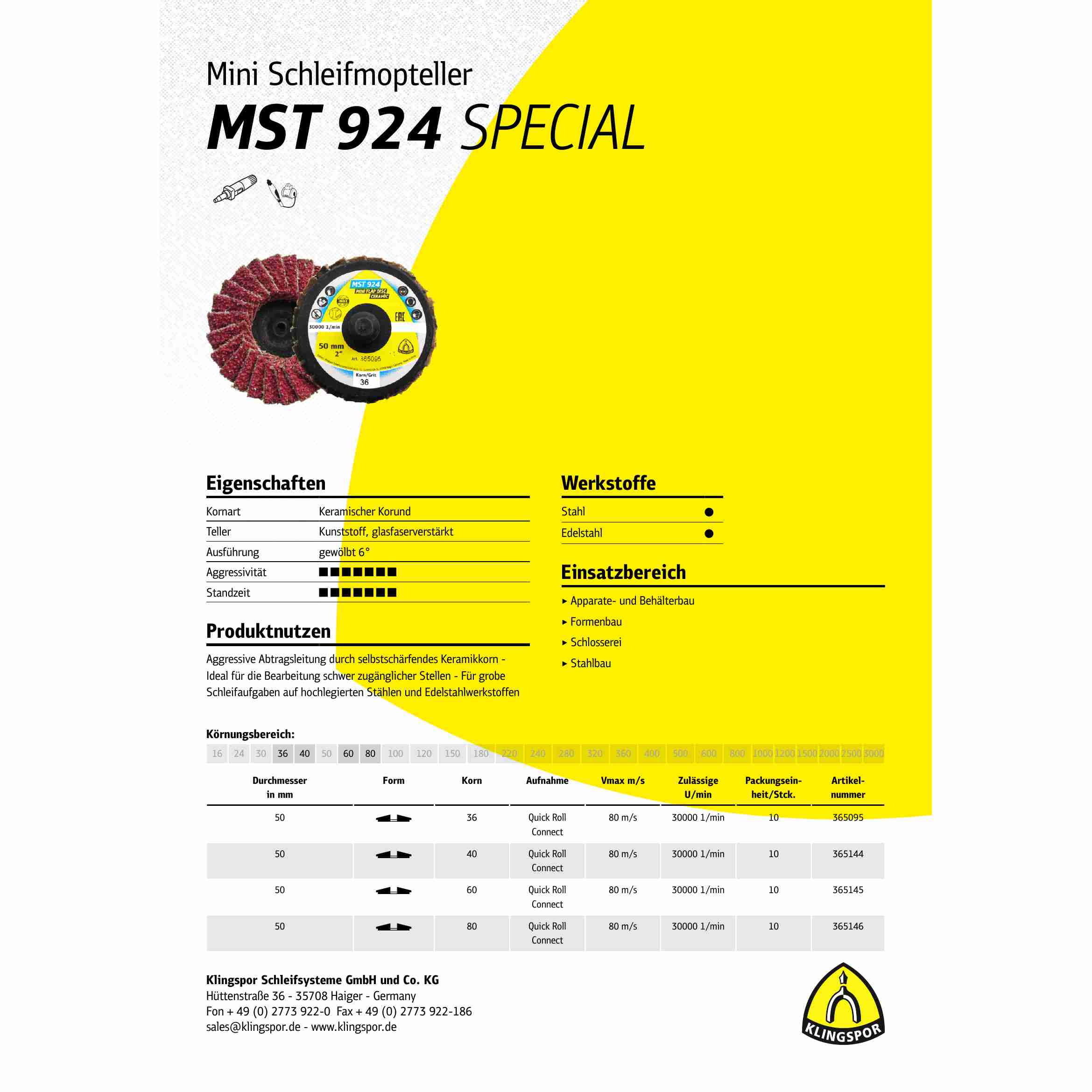 10 x Klingspor MST 924 Schleifmopteller Korn 40 50 mm gewölbt Quick Roll Connect