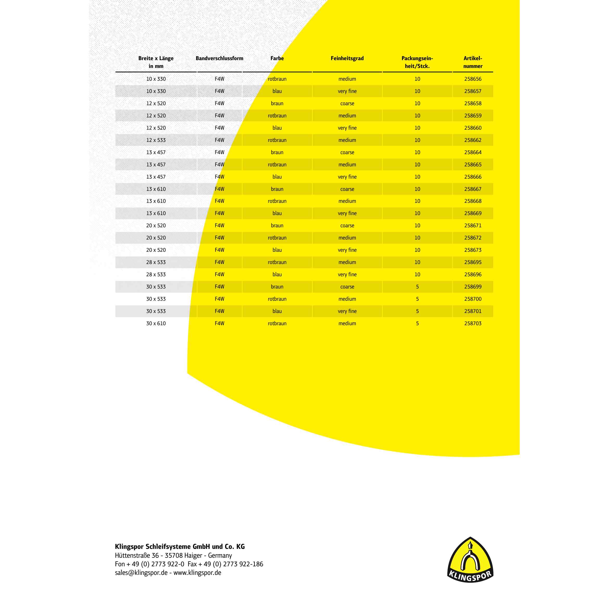 Merkmale: Spezialprodukt für präzise Oberflächenbearbeitung von Metall und Edelstahl mit Bandfeilen. Hervorragende Standzeit und Kantenstabilität. Minimales Zusetzen dank spezieller Beschaffenheit. Reißfeste Bandverbindung für eine lange Lebensdauer.