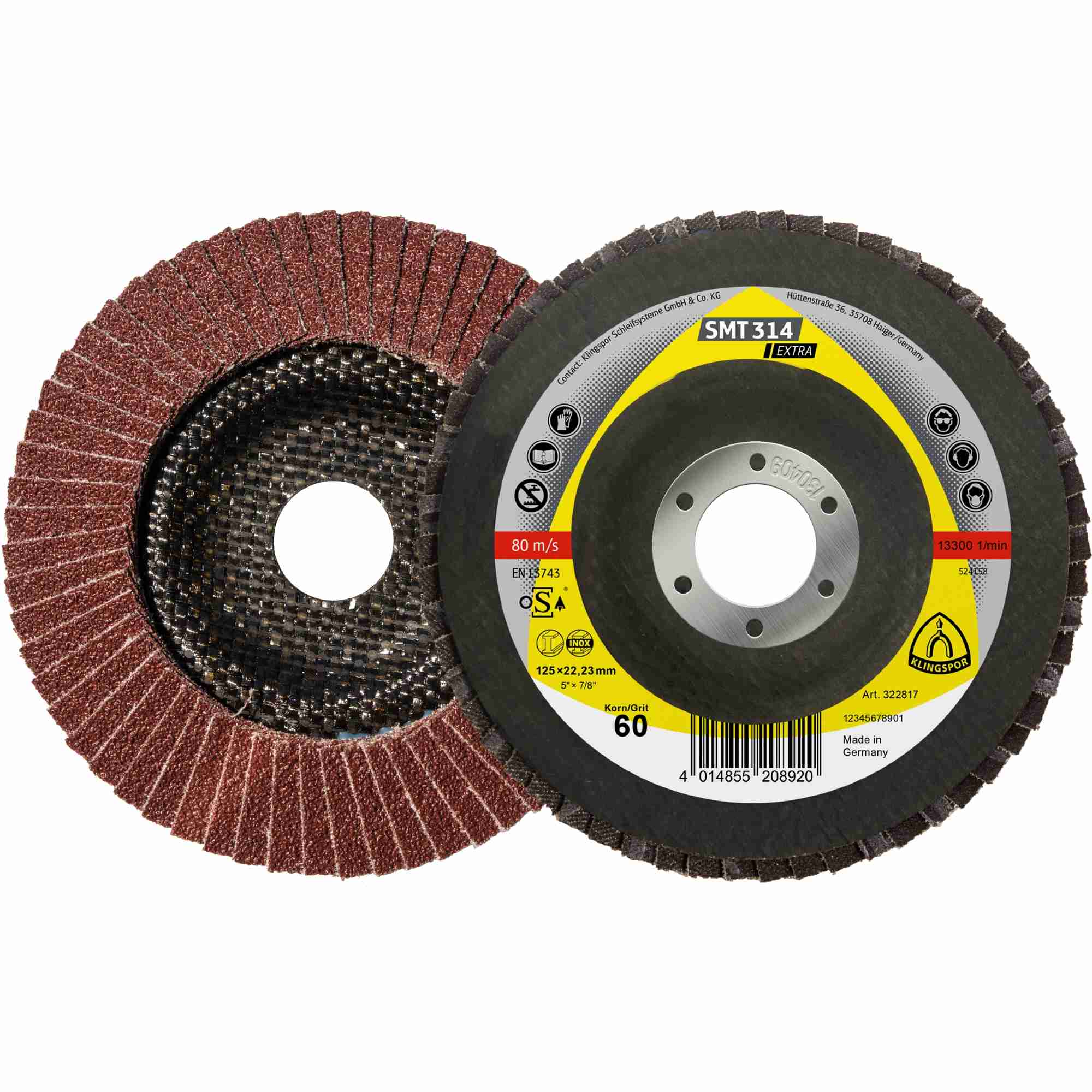Besonderheiten: Der Klingspor SMT 314 Schleifmopteller ist mit seinem langlebigen Korund-Schleifkorn und gewölbtem Teller der Spezialist für das effektive Schleifen von NE-Metallen und Stahl