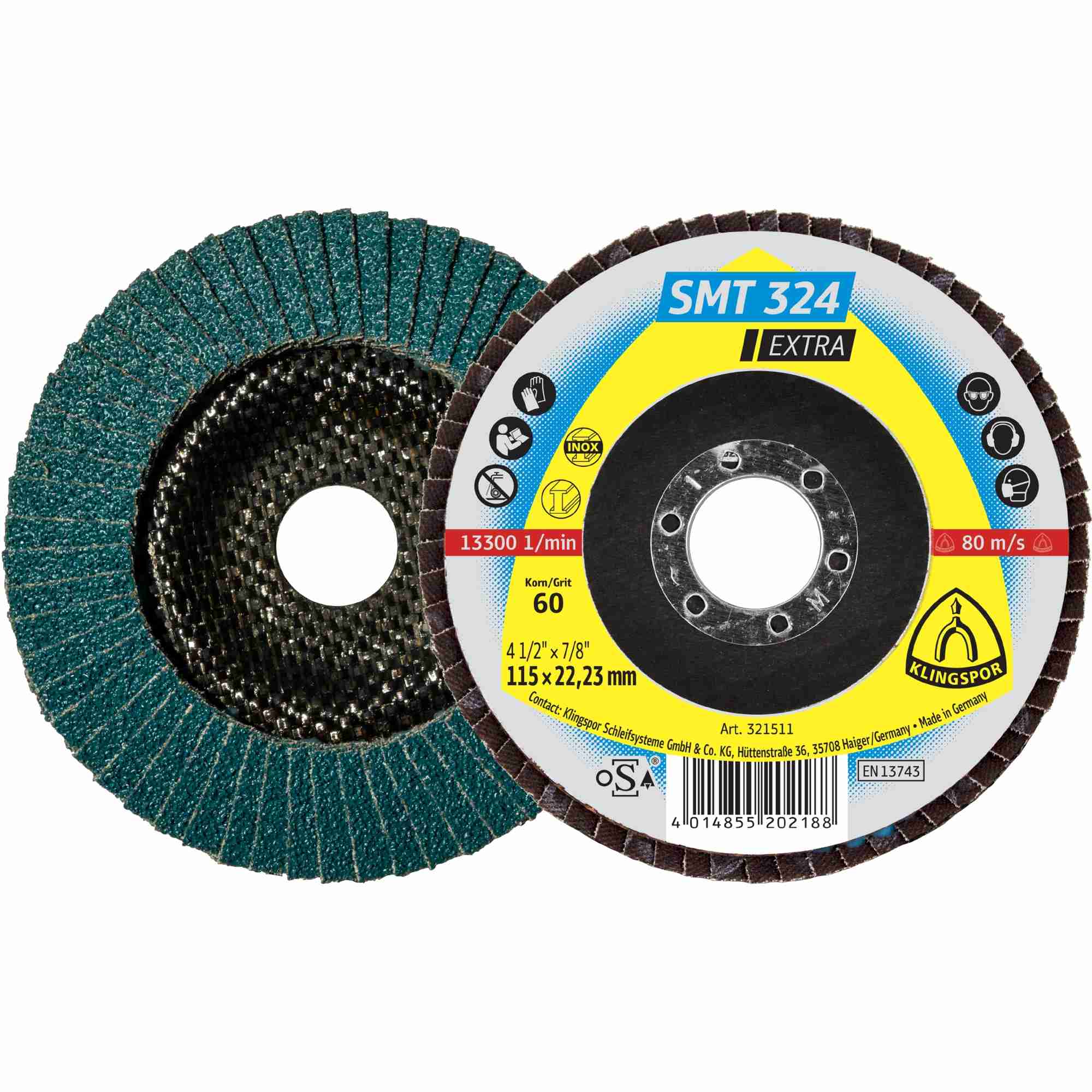 Merkmale: Die Klingspor SMT 324 Schleifmopteller sind mit einem aggressiven Zirkonkorund-Schleifkorn ausgestattet, was sie zu einer idealen Wahl für das Schleifen von Edelstahl und Stahl macht