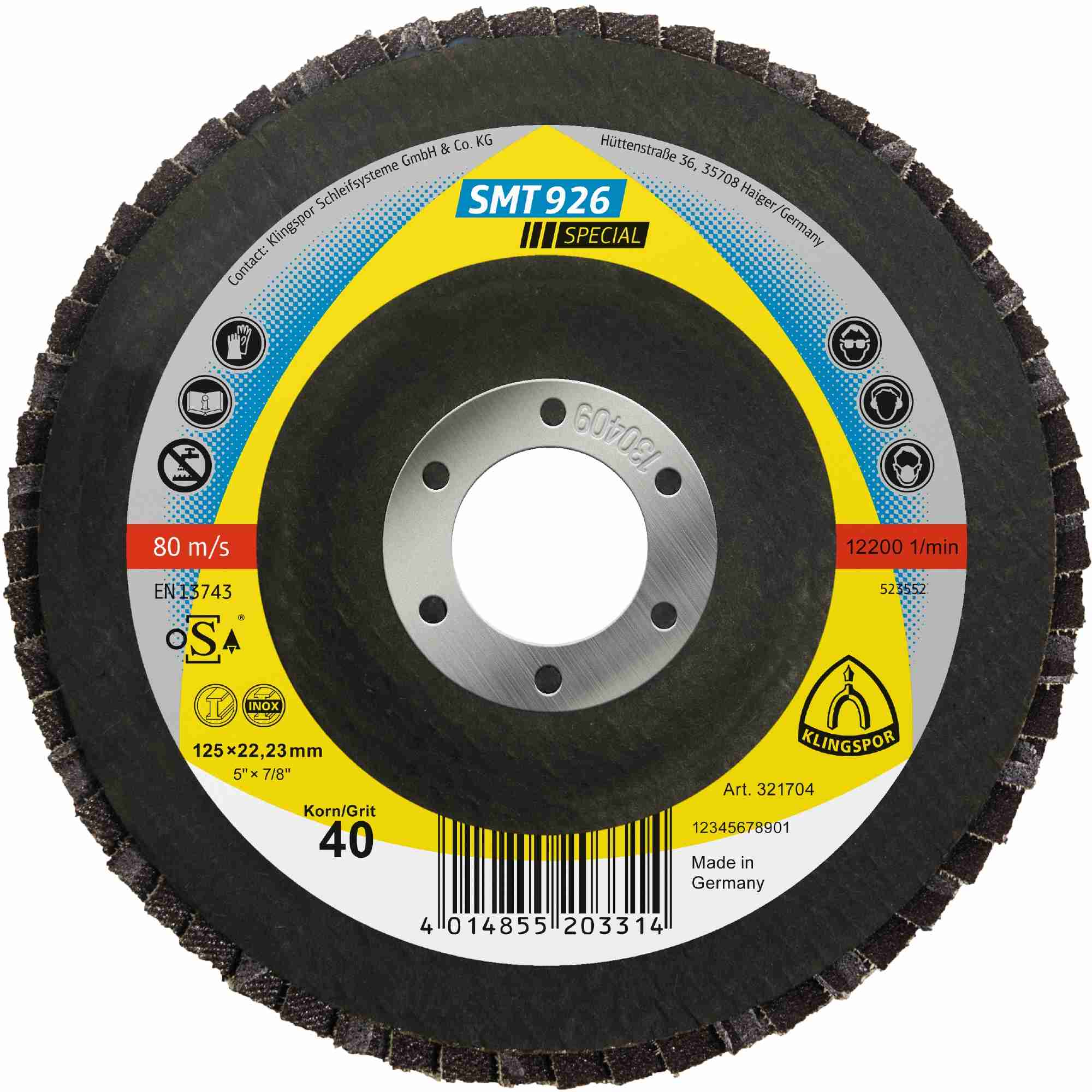 Merkmale: Die Klingspor SMT 926 Schleifmopteller sind mit Zirkonkorund-Schleifkorn ausgestattet und eignen sich ideal für das grobe Schleifen von Edelstahl und Stahl
