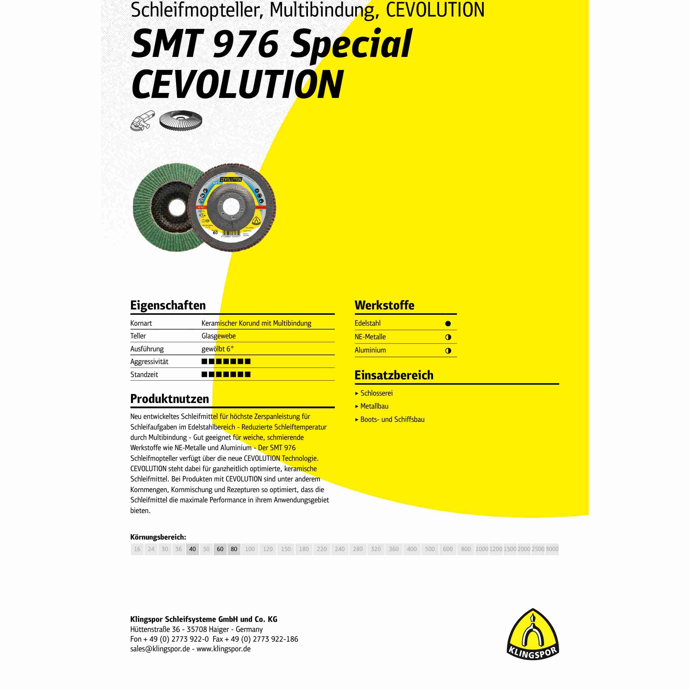 Entdecken Sie hocheffizientes Schleifen mit dem SMT 976 Schleifmopteller. Dank CEVOLUTION Technologie ideal für Edelstahl und NE-Metalle, mit reduzierter Schleiftemperatur.,