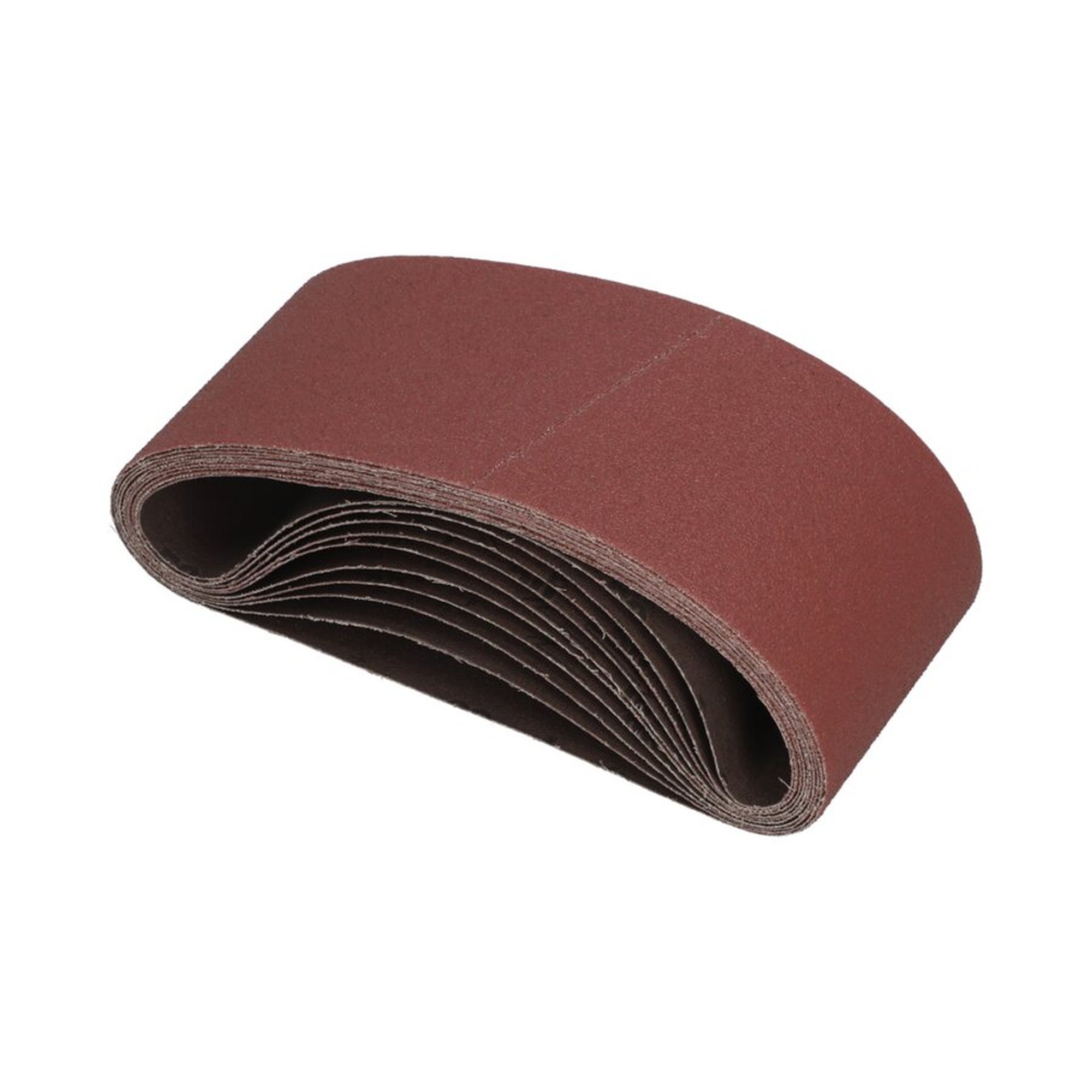 Hochwertige Schleifbänder 100x560mm, Körnung 50, ideal für Metall- und Holzarbeiten. Einfache Montage dank Stoßverbindung, effizientes Schleifen mit Aluminiumoxidkorn.,