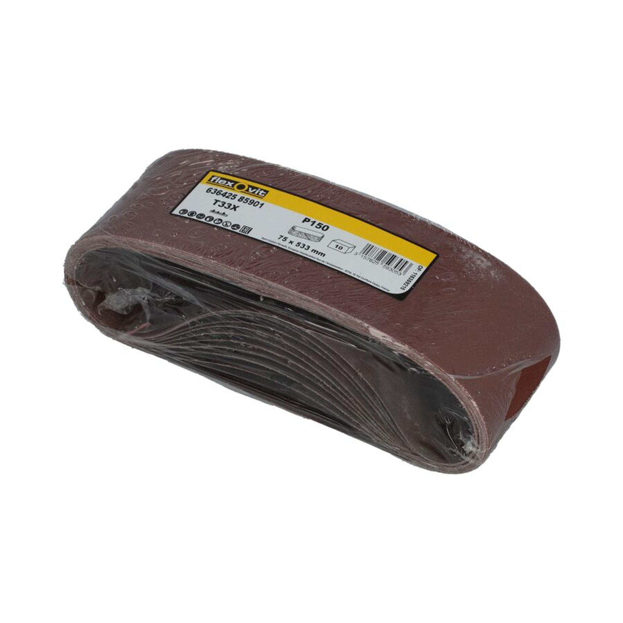 10 x Norton Bänder für Hand-Bandschleifer 75x533mm K150 Flexovit T33X