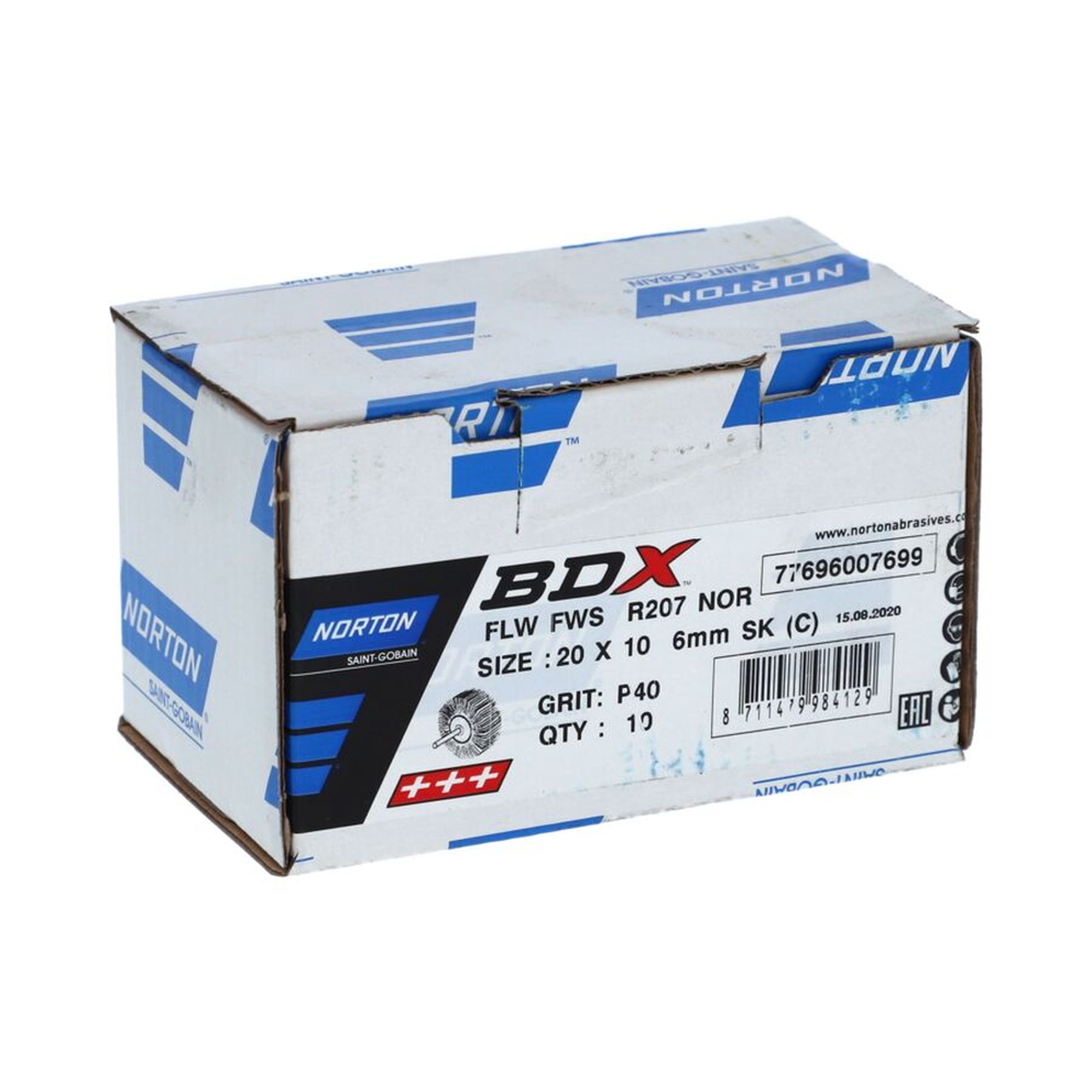 10 x Norton Fächerschleifer Schleifmop mit Schaft 20x10x6 R207 Korn 40