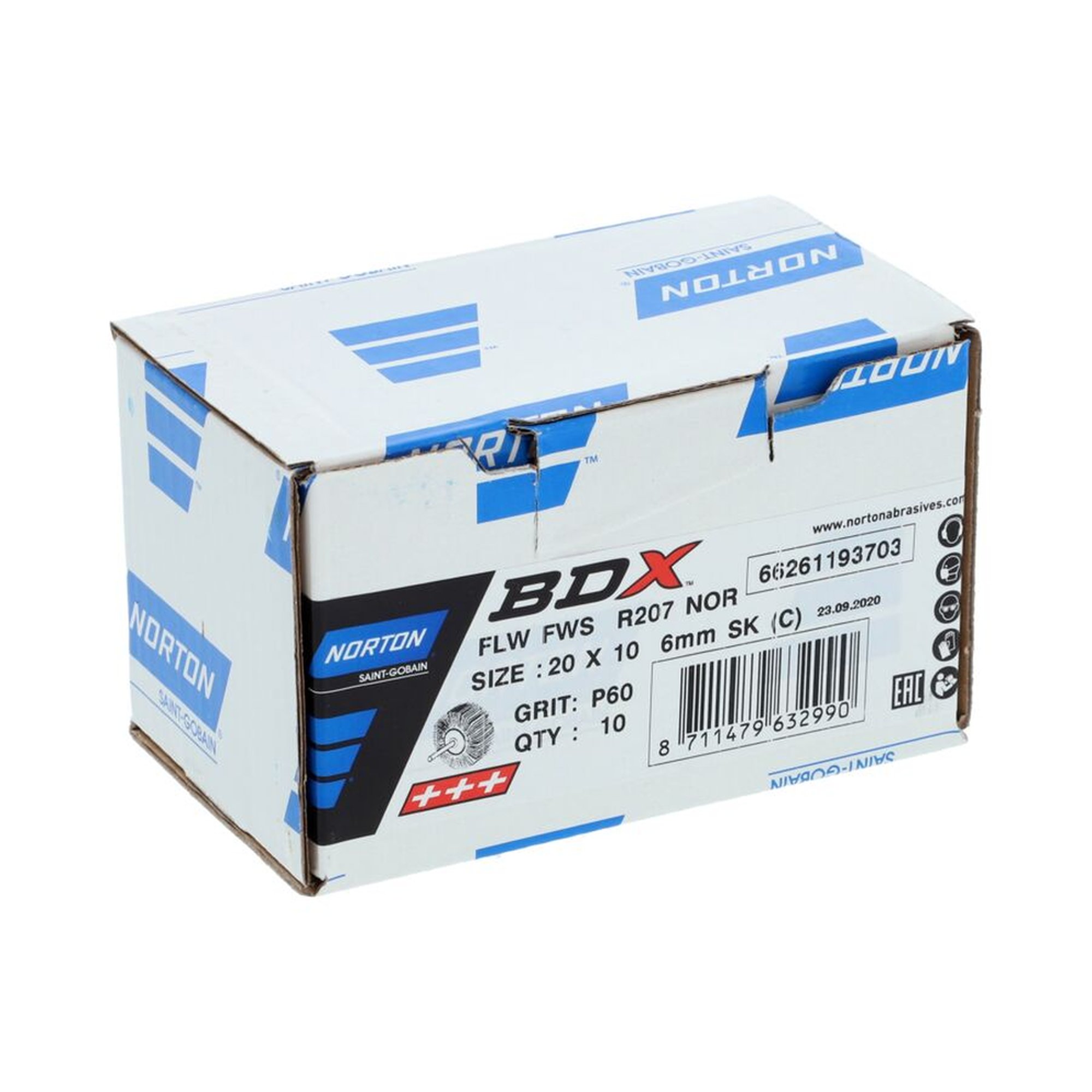 10 x Norton Fächerschleifer Schleifmop mit Schaft 20x10x6 R207 Korn 60