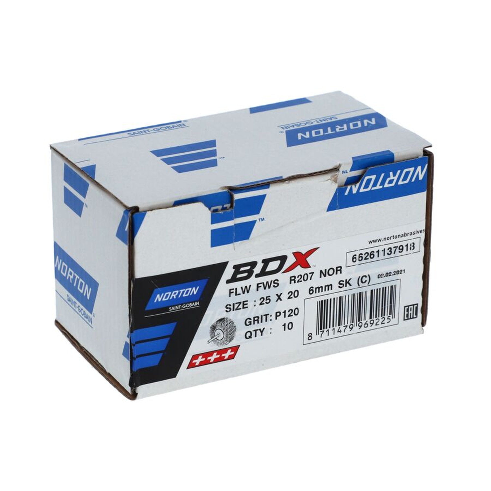 10 x Norton Fächerschleifer Schleifmop mit Schaft 25x20x6 R207 120 Korn