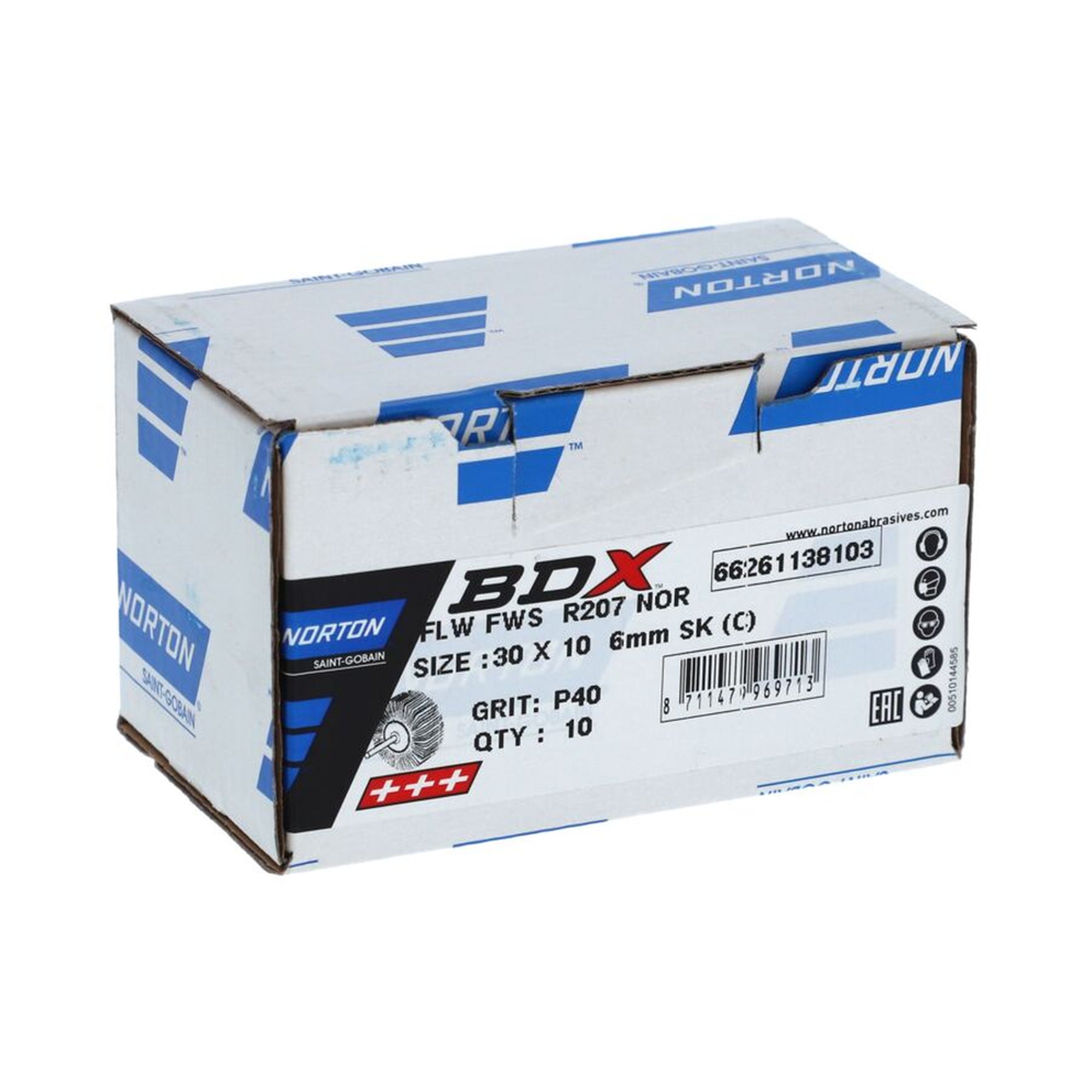 10 x Norton Fächerschleifer Schleifmop mit Schaft 30x10x6 R207 Korn 40