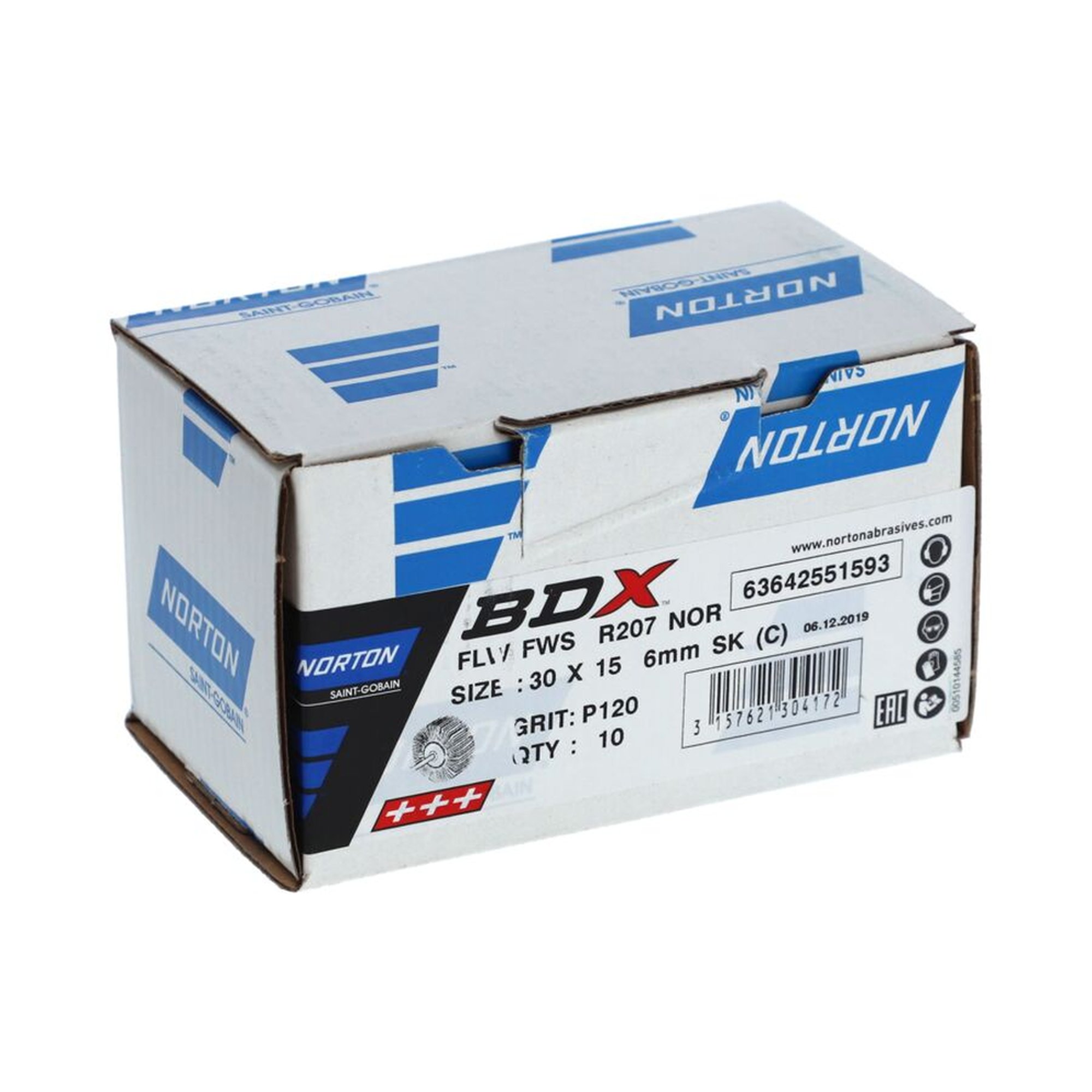 10 x Norton Fächerschleifer Schleifmop mit Schaft 30x15x6 R207 120 Korn