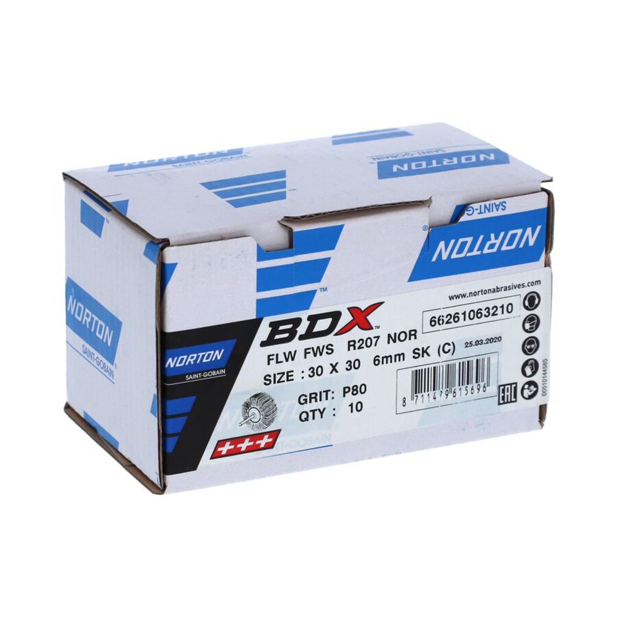10 x Norton Fächerschleifer Schleifmop mit Schaft 30x30x6 R207 80 Korn