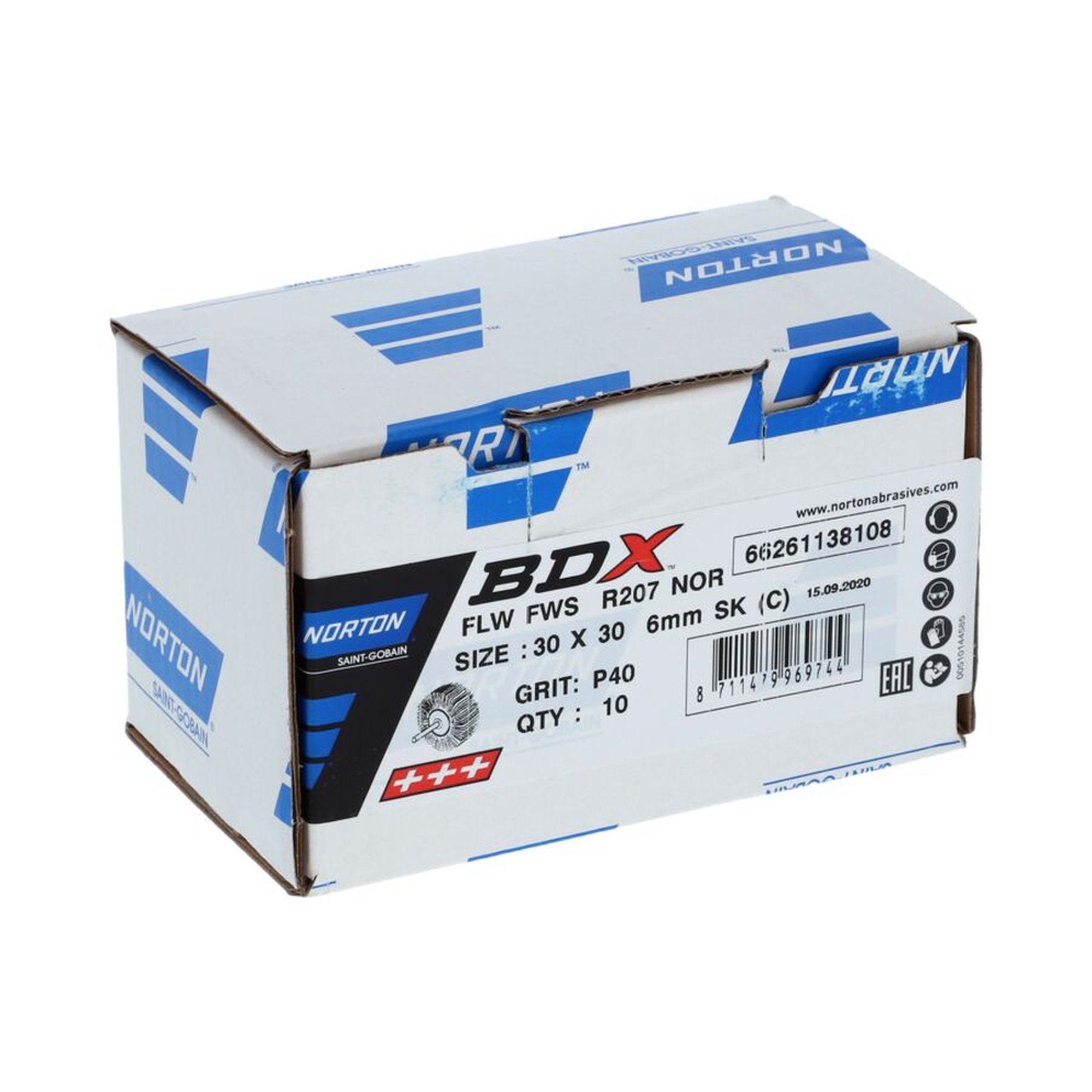 10 x Norton Fächerschleifer Schleifmop mit Schaft 30x30x6 R207 Korn 40
