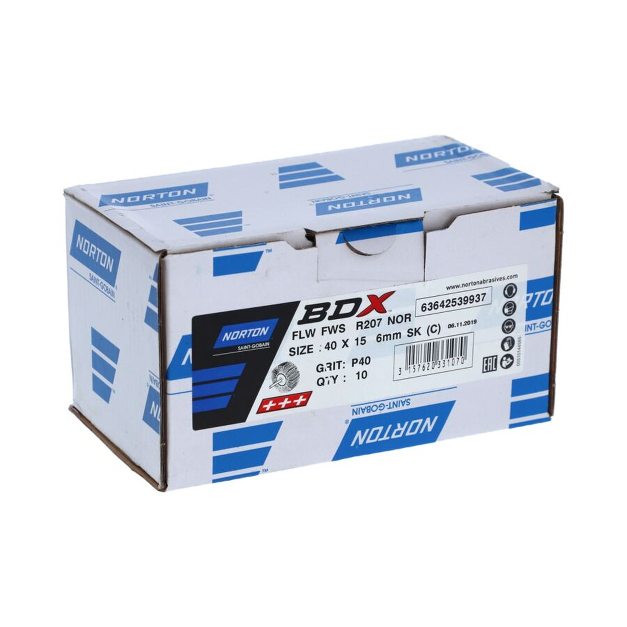 10 x Norton Fächerschleifer Schleifmop mit Schaft 40x15x6 R207 Korn 40