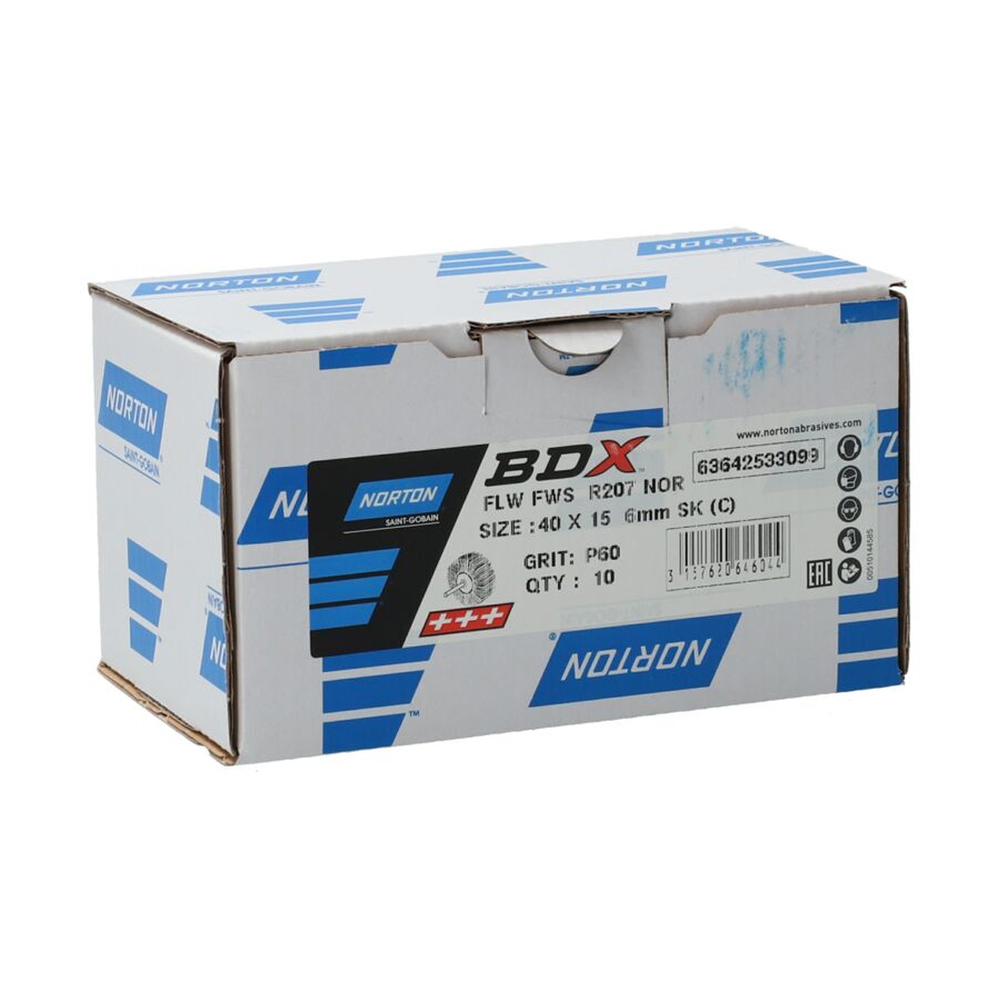 10 x Norton Fächerschleifer Schleifmop mit Schaft 40x15x6 R207 Korn 60