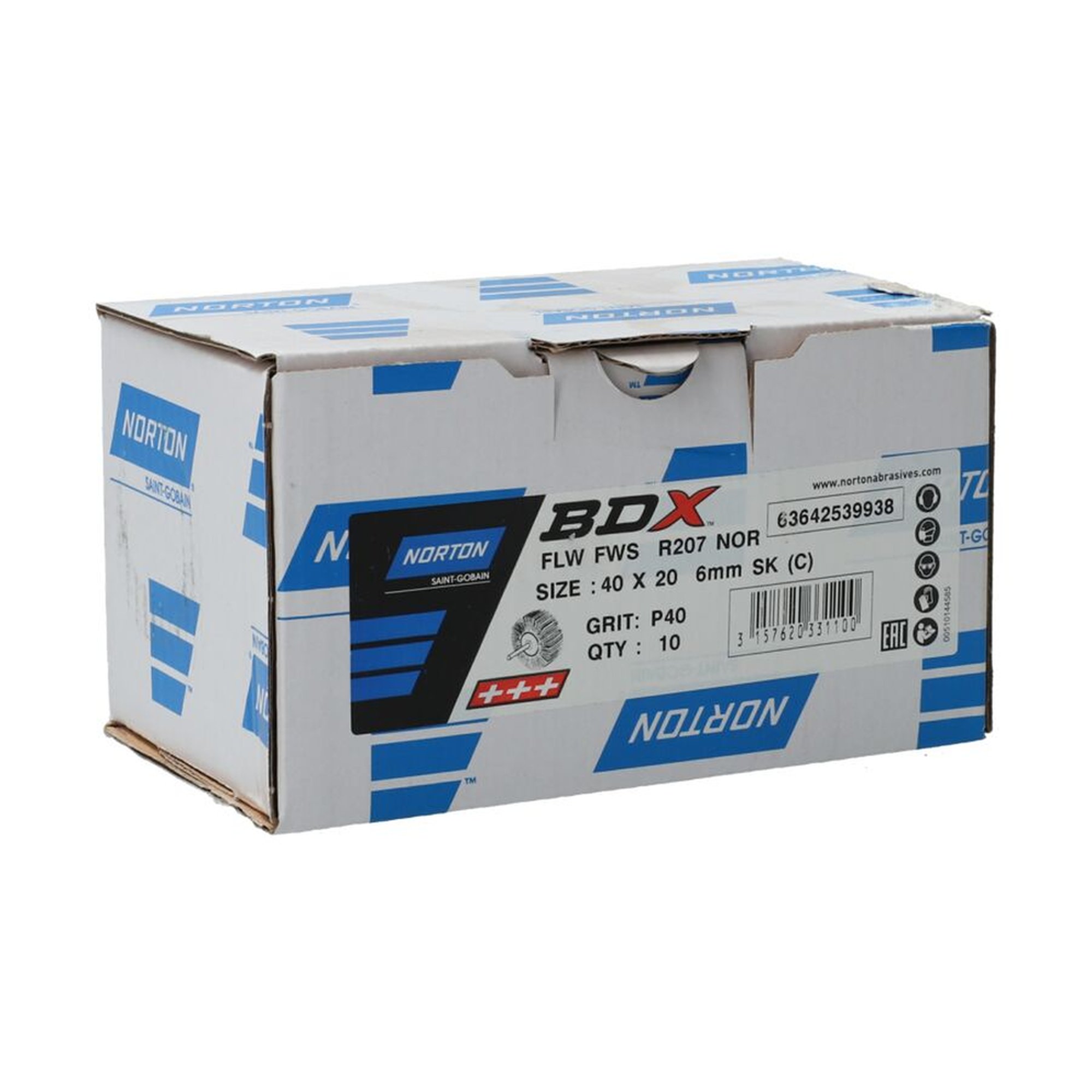 10 x Norton Fächerschleifer Schleifmop mit Schaft 40x20x6 R207 Korn 40