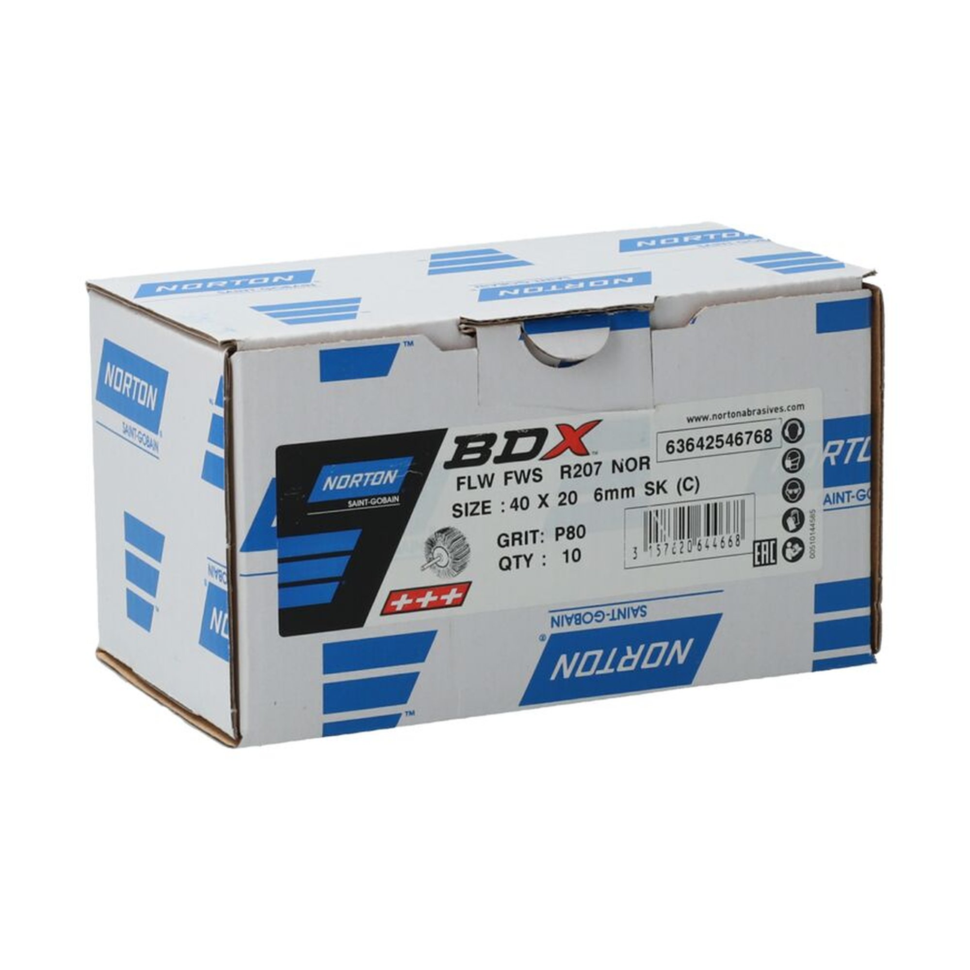 10 x Norton Fächerschleifer Schleifmop mit Schaft 40x20x6 R207 Korn 80