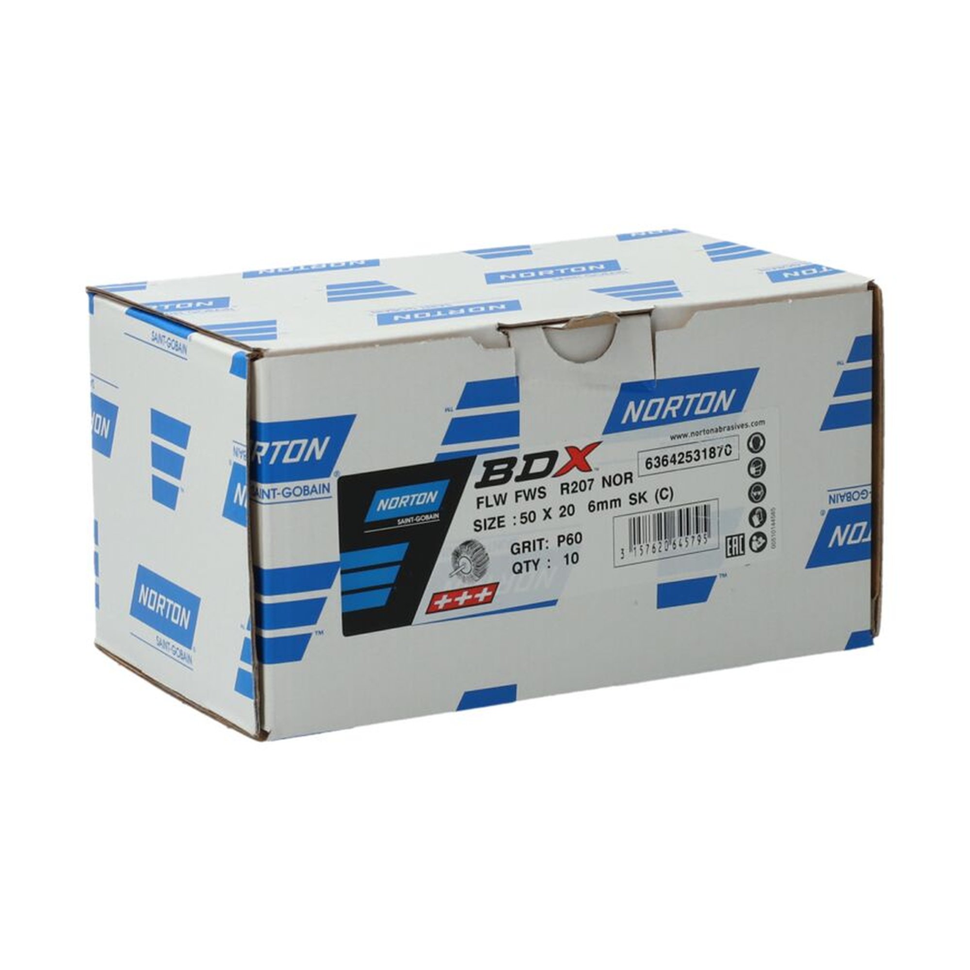 10 x Norton Fächerschleifer Schleifmop mit Schaft 50x20x6 R207 Korn 60