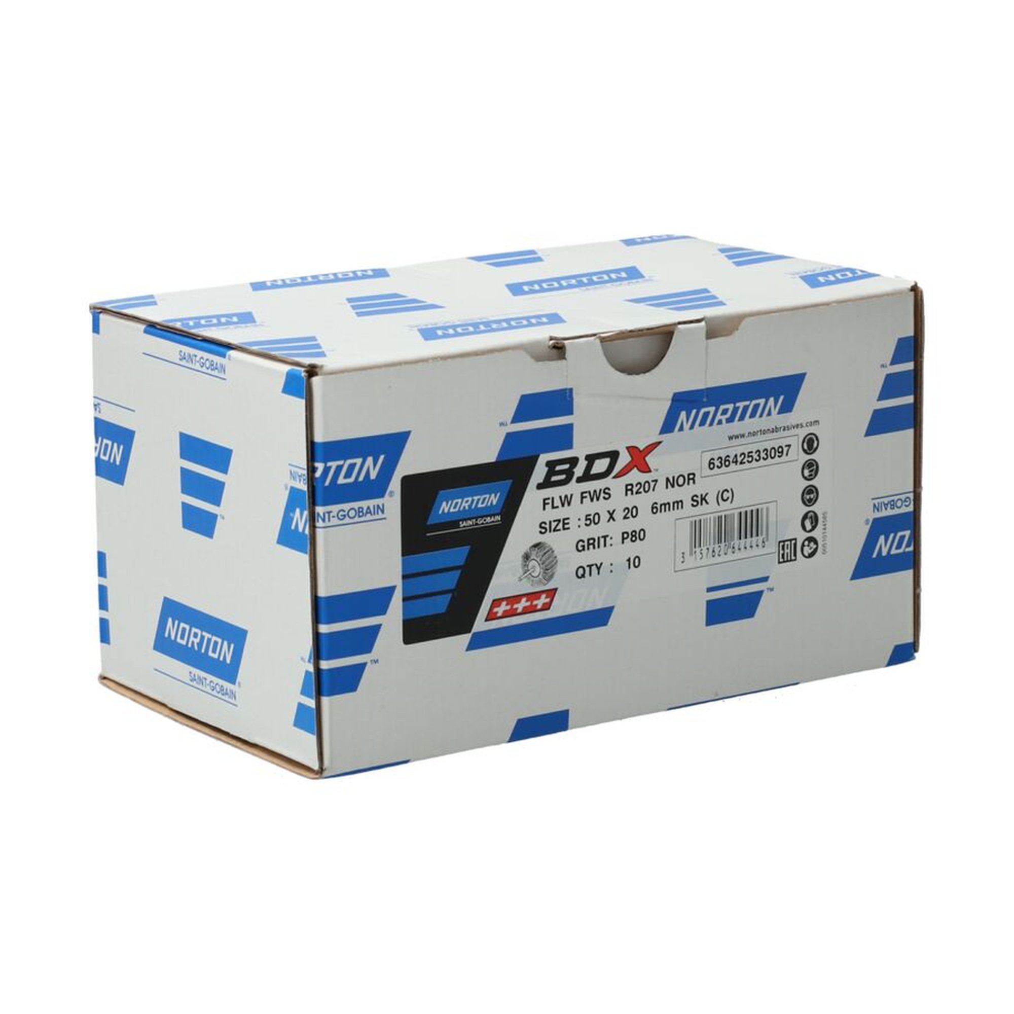 10 x Norton Fächerschleifer Schleifmop mit Schaft 50x20x6 R207 Korn 80